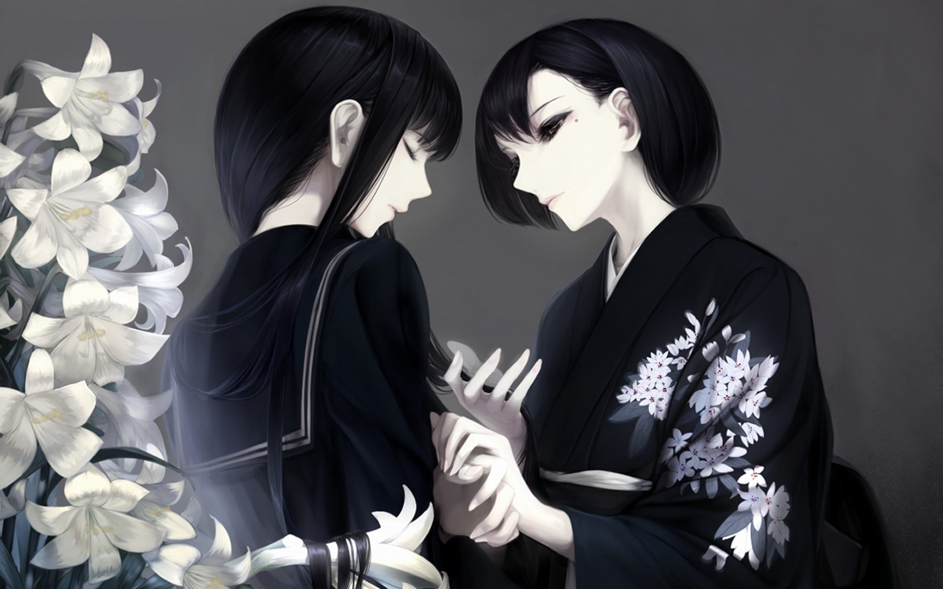 Tagi:dziewczyny, kwiaty, lilie, mundurki szkolne, kimono