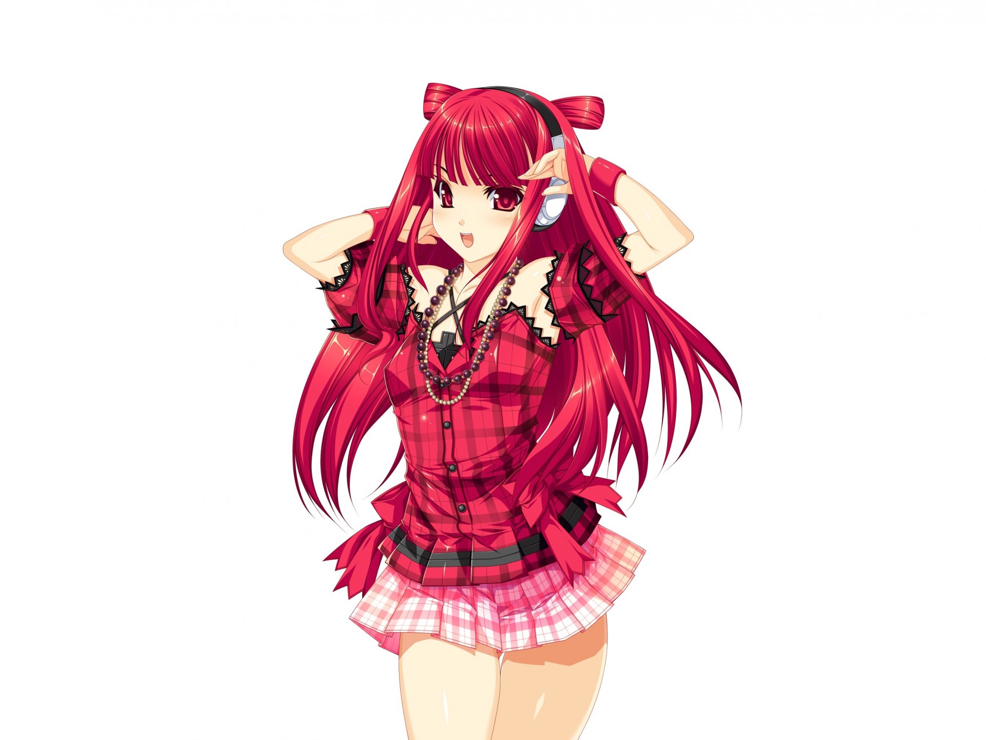 Rysunek dziewczyny z czerwonymi włosami w stylu anime - tapety na telefon