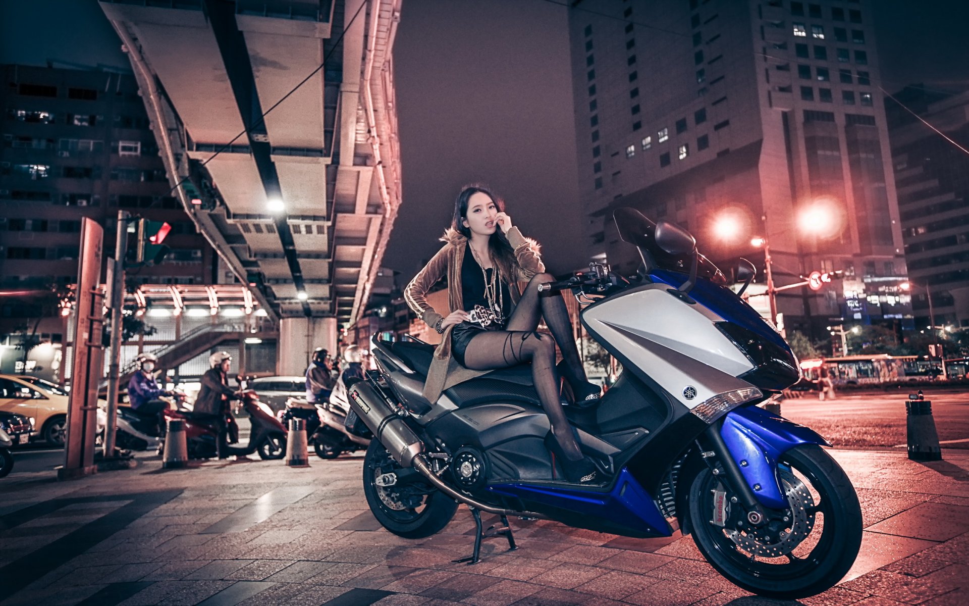 Bezczelna dziewczyna na motocyklu w mieście - tapety na pulpit