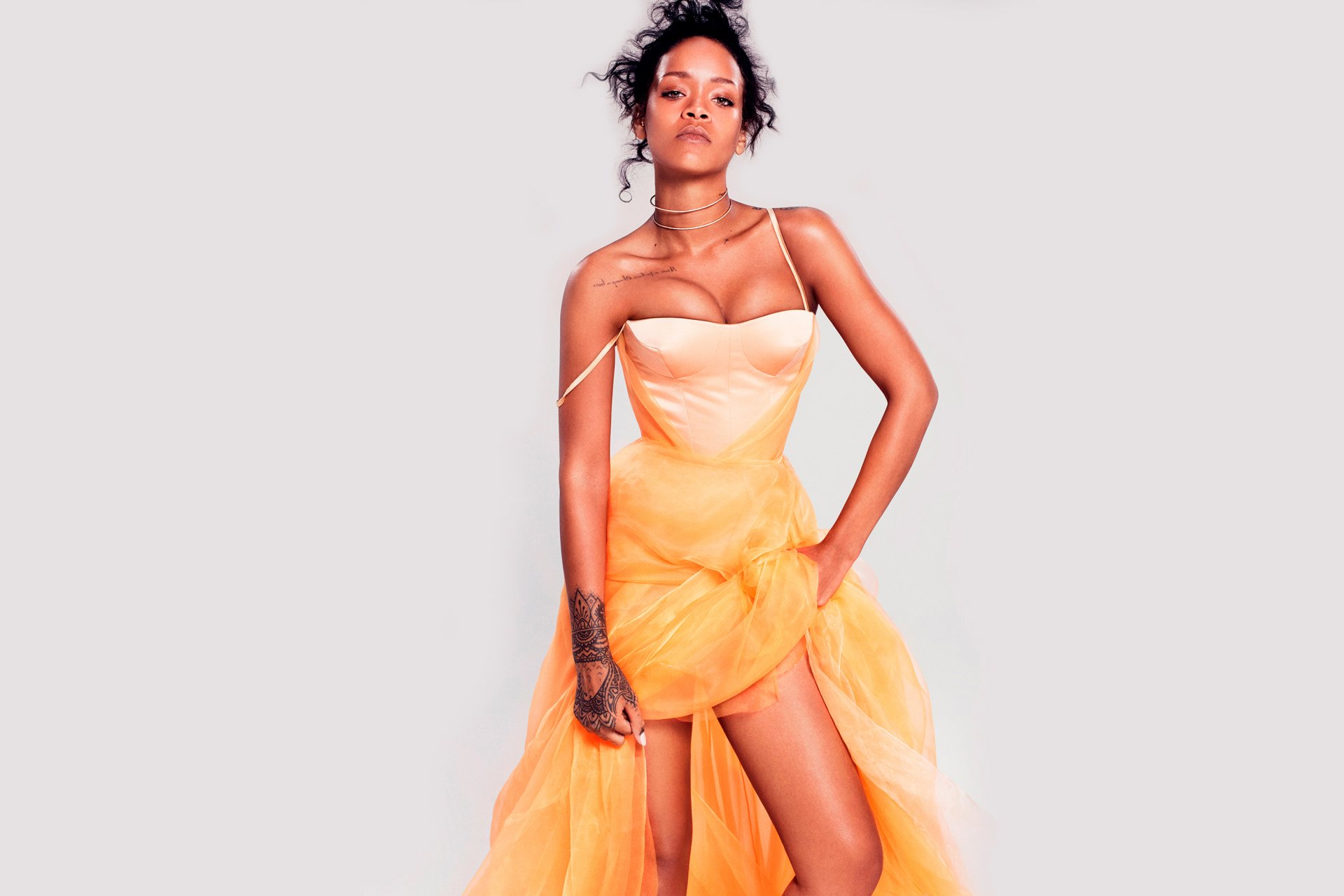 Fotorelacja piosenkarki Rihanny w żółtej sukience - tapety na telefon