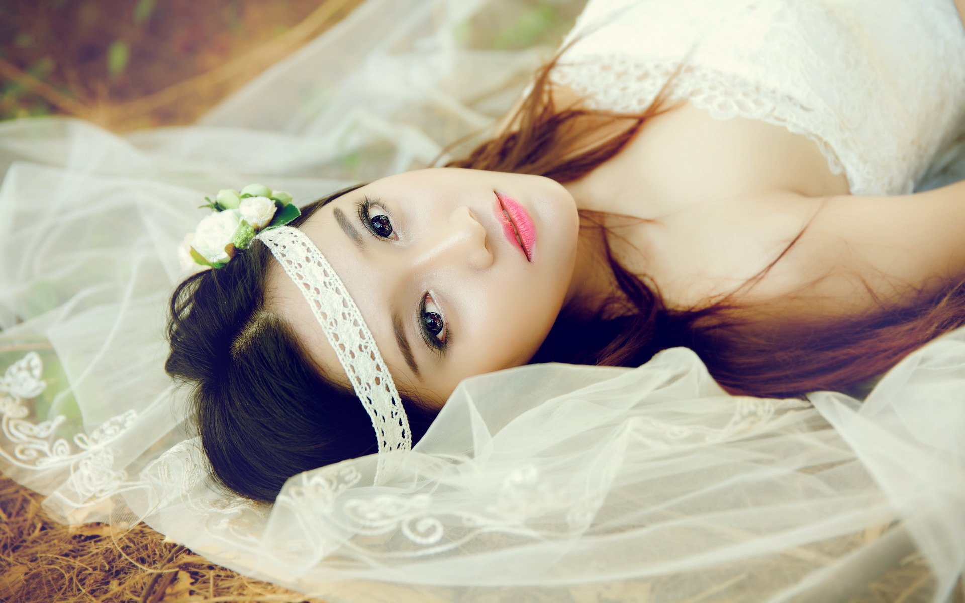Piękna dziewczyna Azjatka W białym - tapety na telefon
