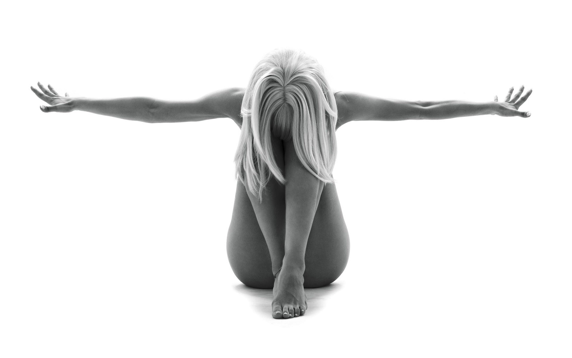 Naga dziewczyna w zabawnej pozie na białym tle - tapety na pulpit