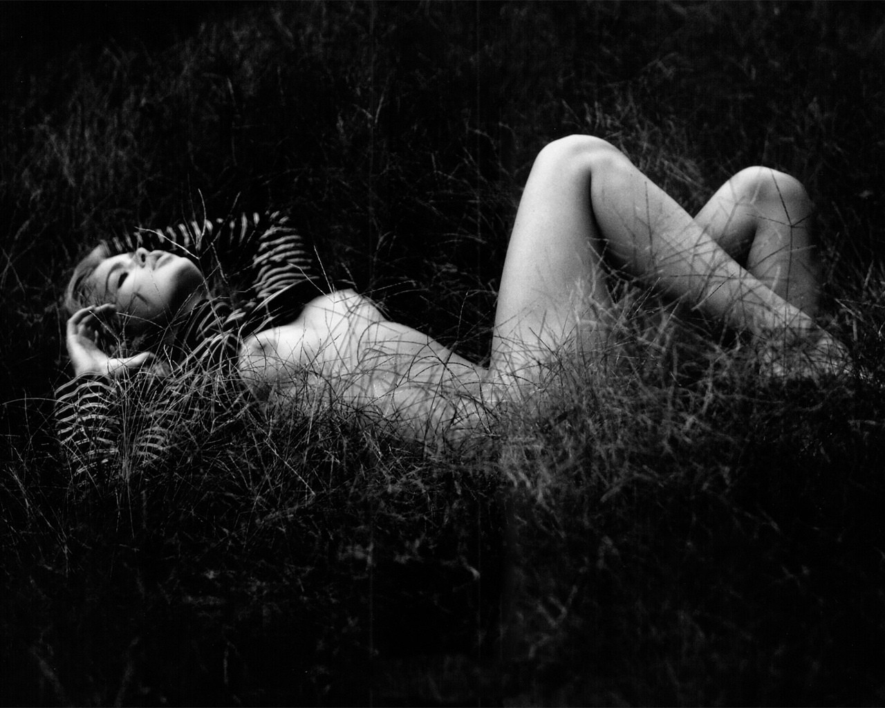 Tagi:czarno-biała, piersi, trawa, dziewczyna