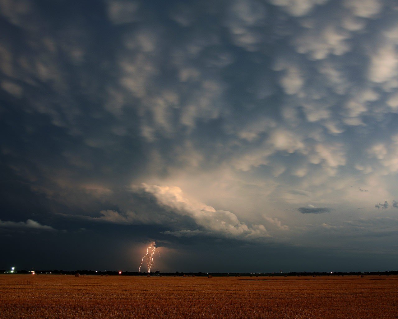 Błyskawica na ponurym ciemnym niebie - tapety na telefon