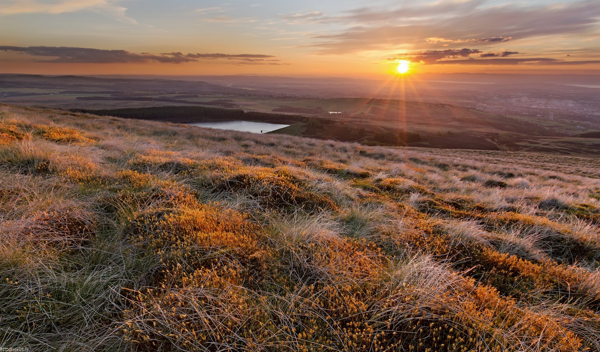 Tagi:łąki, jezioro, słońce, zachód słońca