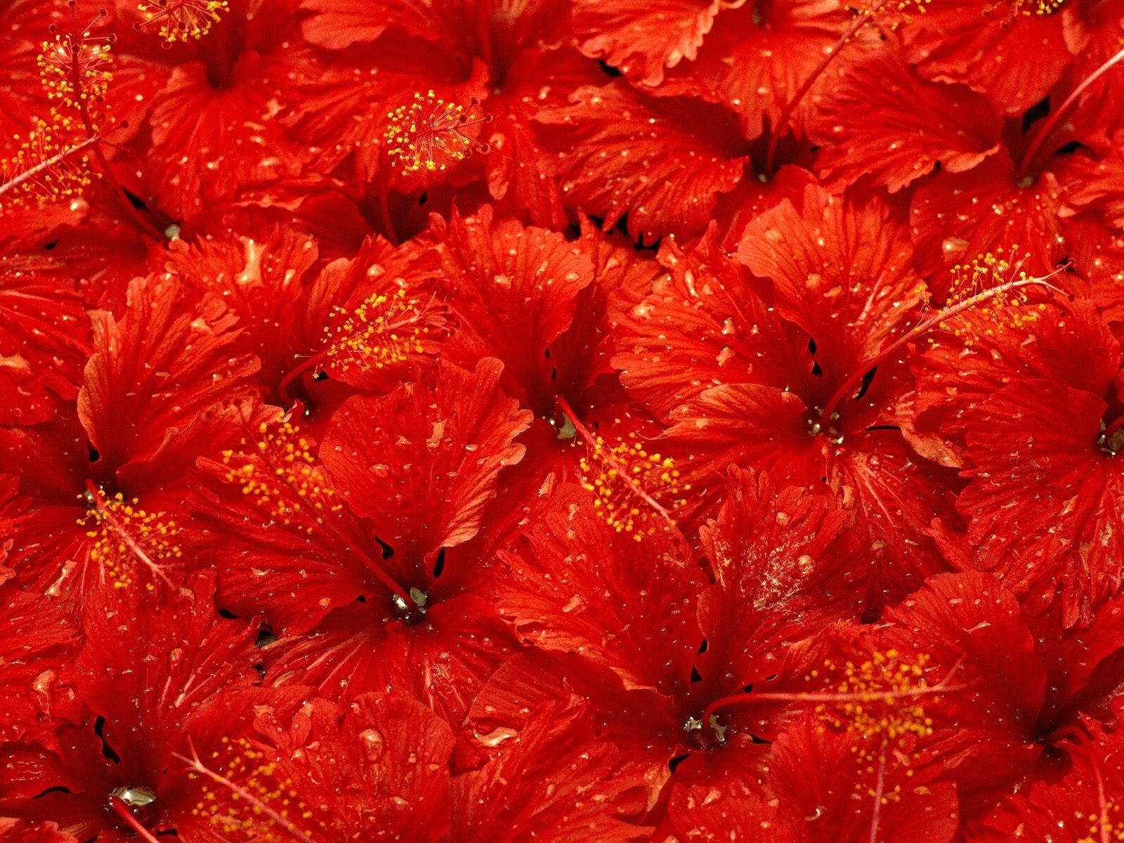 Czerwone kwiaty z kroplami wody - tapety na pulpit