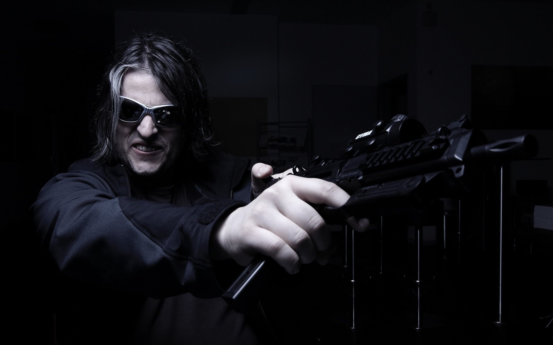 Człowiek z bronią. Mężczyzna z długimi włosami - tapety na telefon