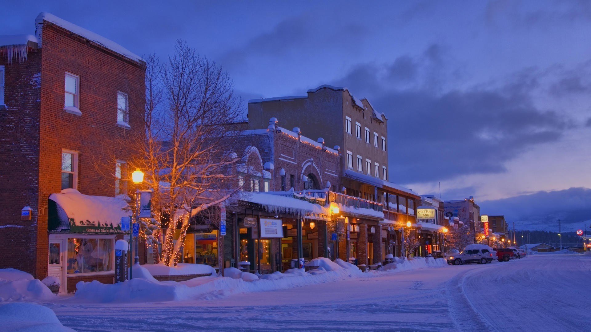 Tagi:kalifornia, śnieg, ulica, samochód, noc, miasta, truckee, zima, miasto