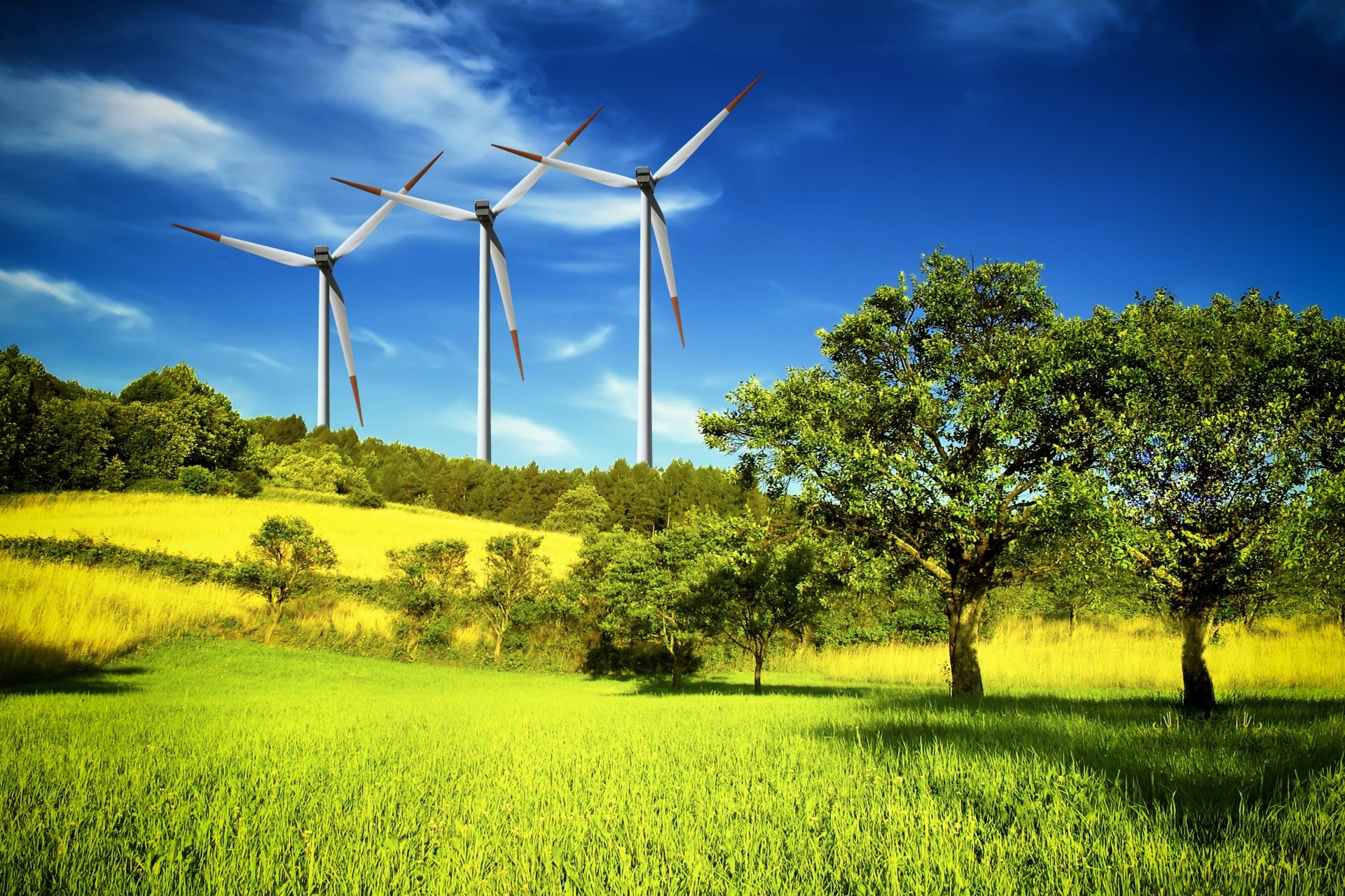 Tagi:wiatraki, chmury, drzewa, trawa, niebo, łąka