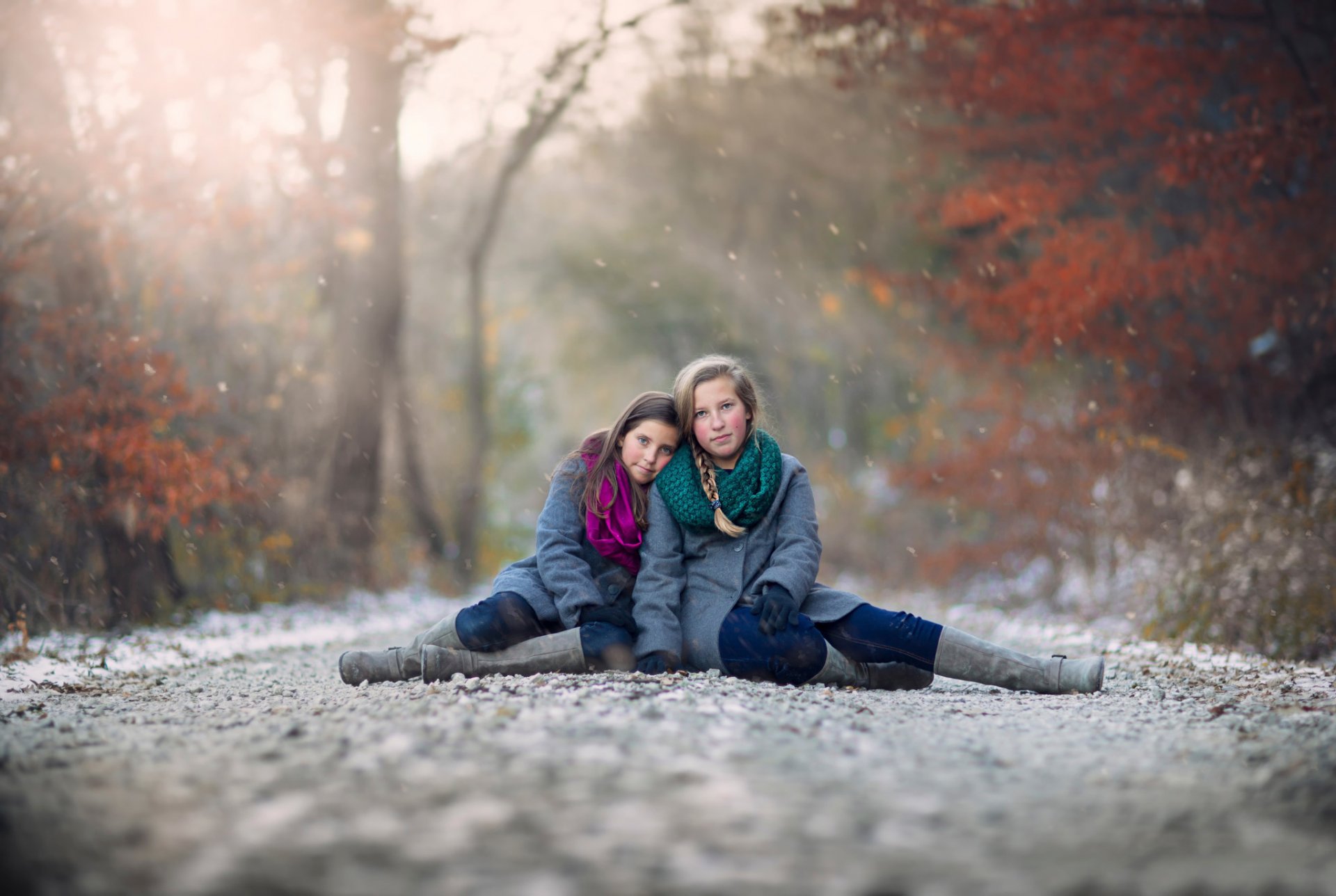 Tagi:dziewczyny, droga, dzieci, jesień, śnieg, bokeh