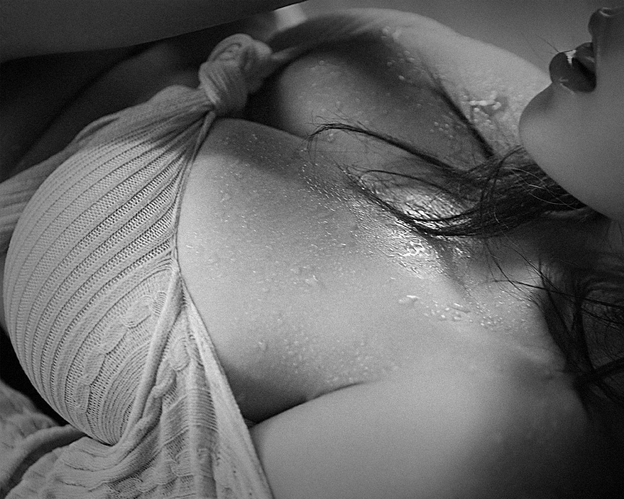 Czarno białe zdjęcia dziewczyny na łóżku w bieliźnie