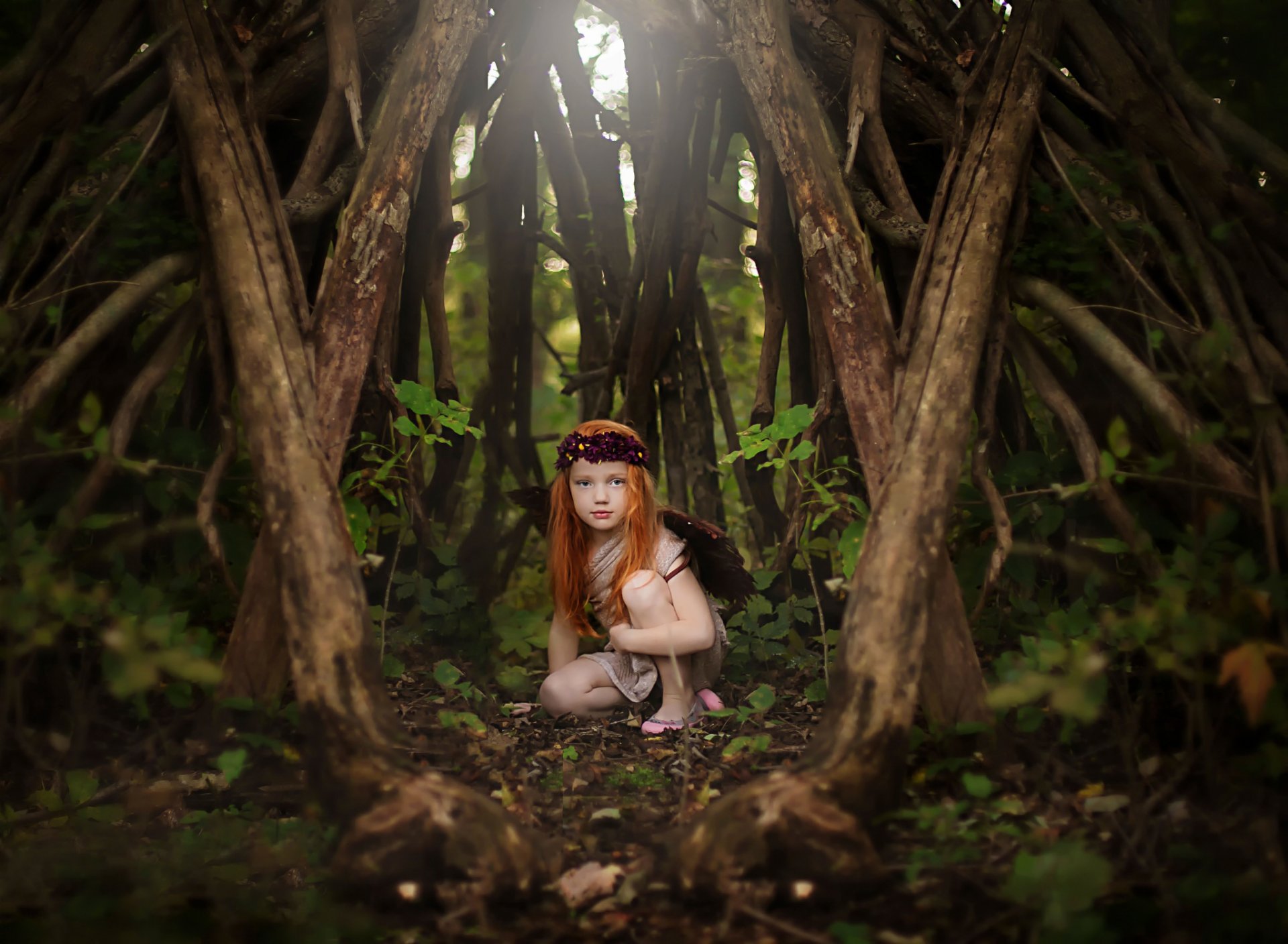 Ruda dziewczyna w lesie