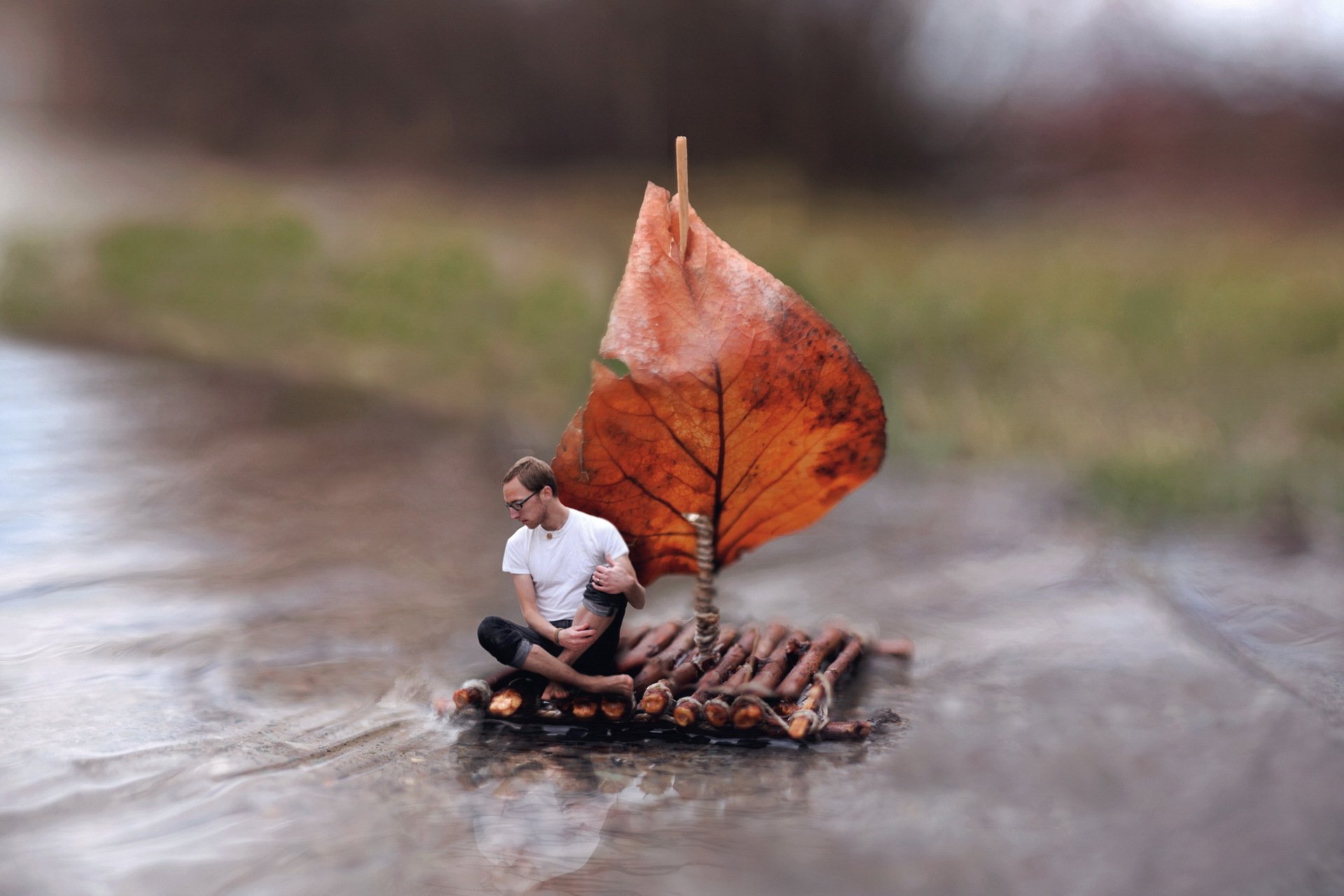 Zdjęcie faceta na drewnianej tratwie - tapety na pulpit