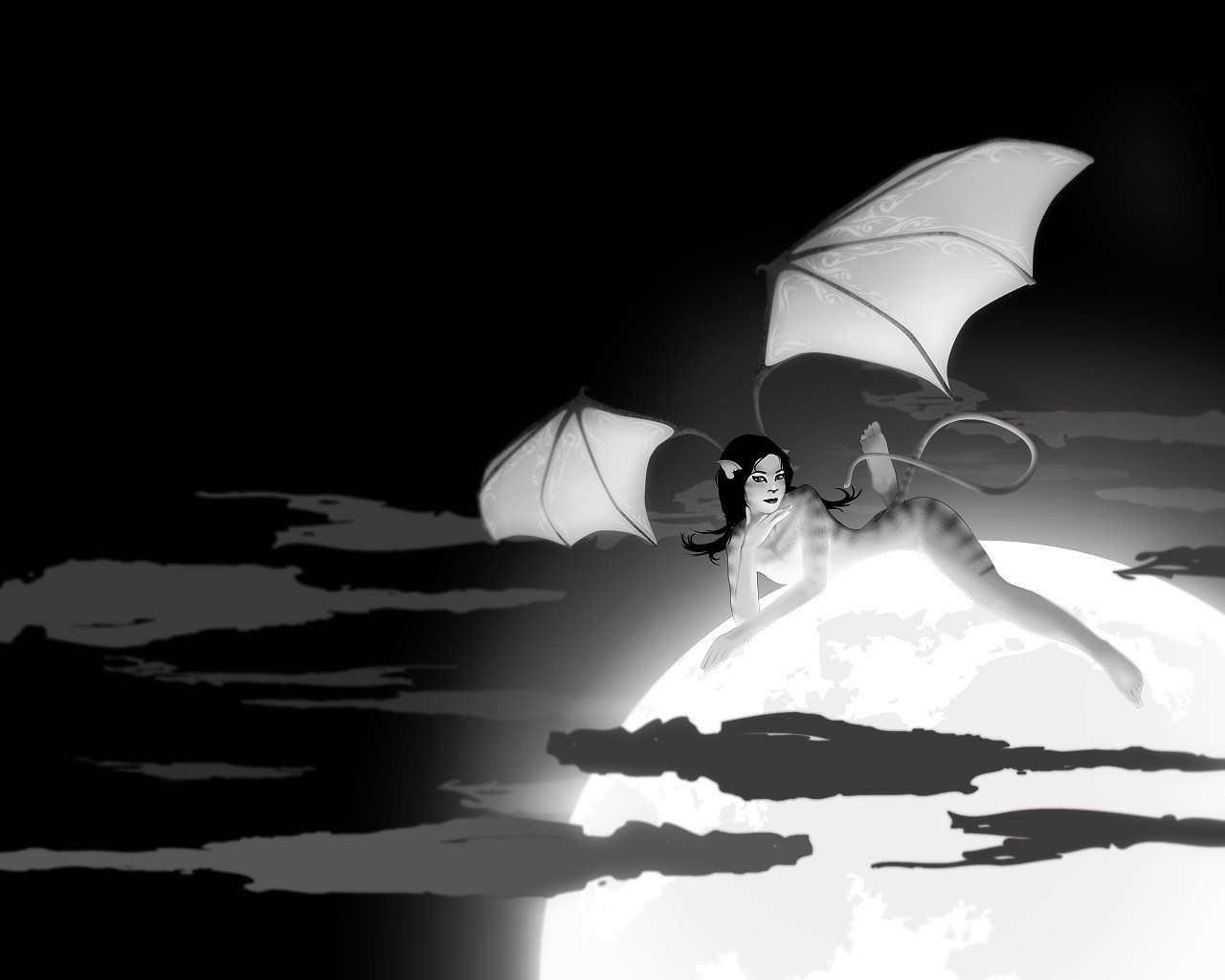 Tagi:czarno-biały, księżyc, chmury, skrzydła