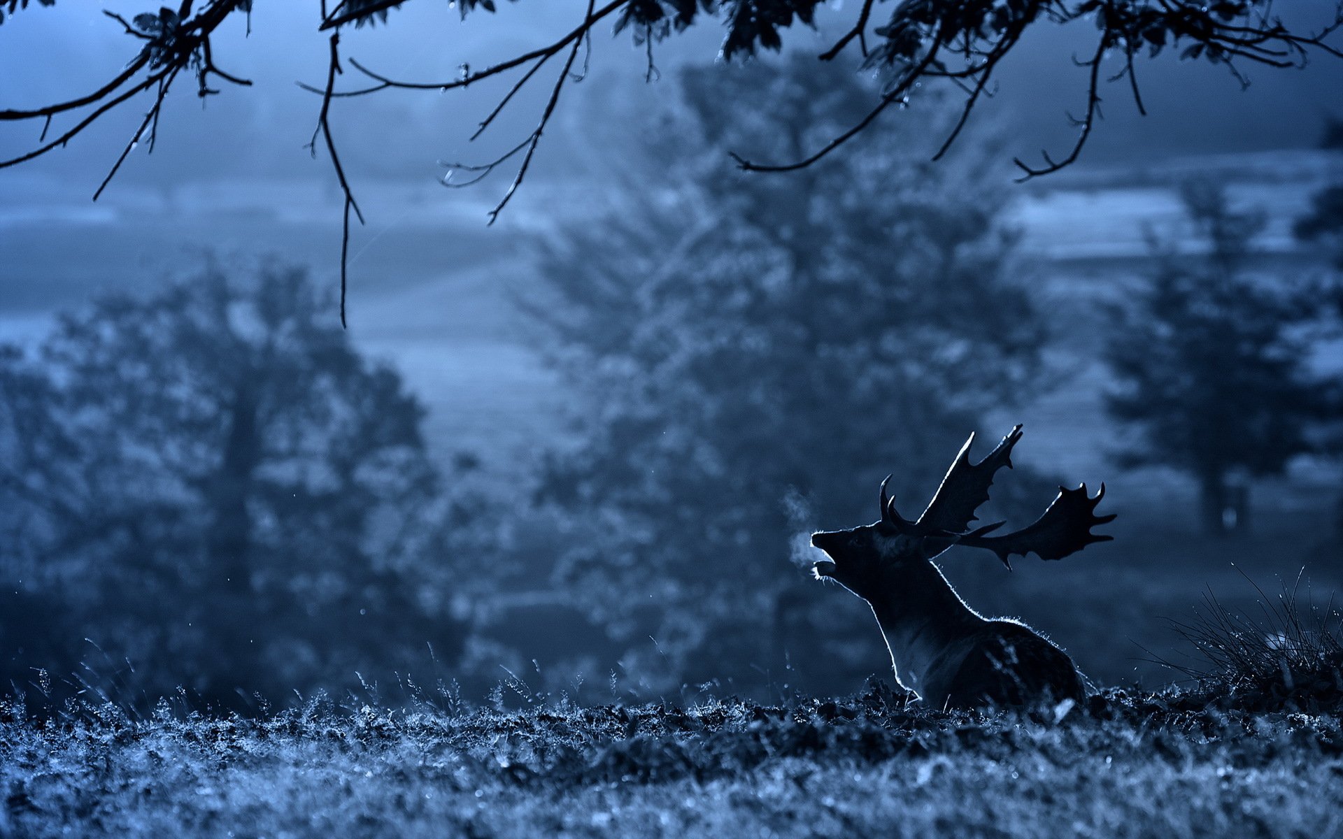 Ilustracja na ciemnym tle rysowana sylwetka drzewaIlustracja na ciemnym tle rysowana sylwetka drzewa