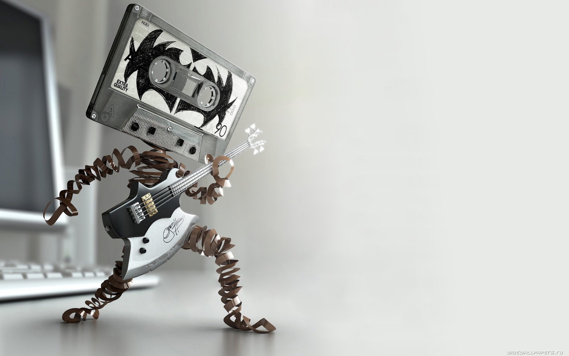 Obiekt artystyczny wykonany z ołówków w kształcie gitary