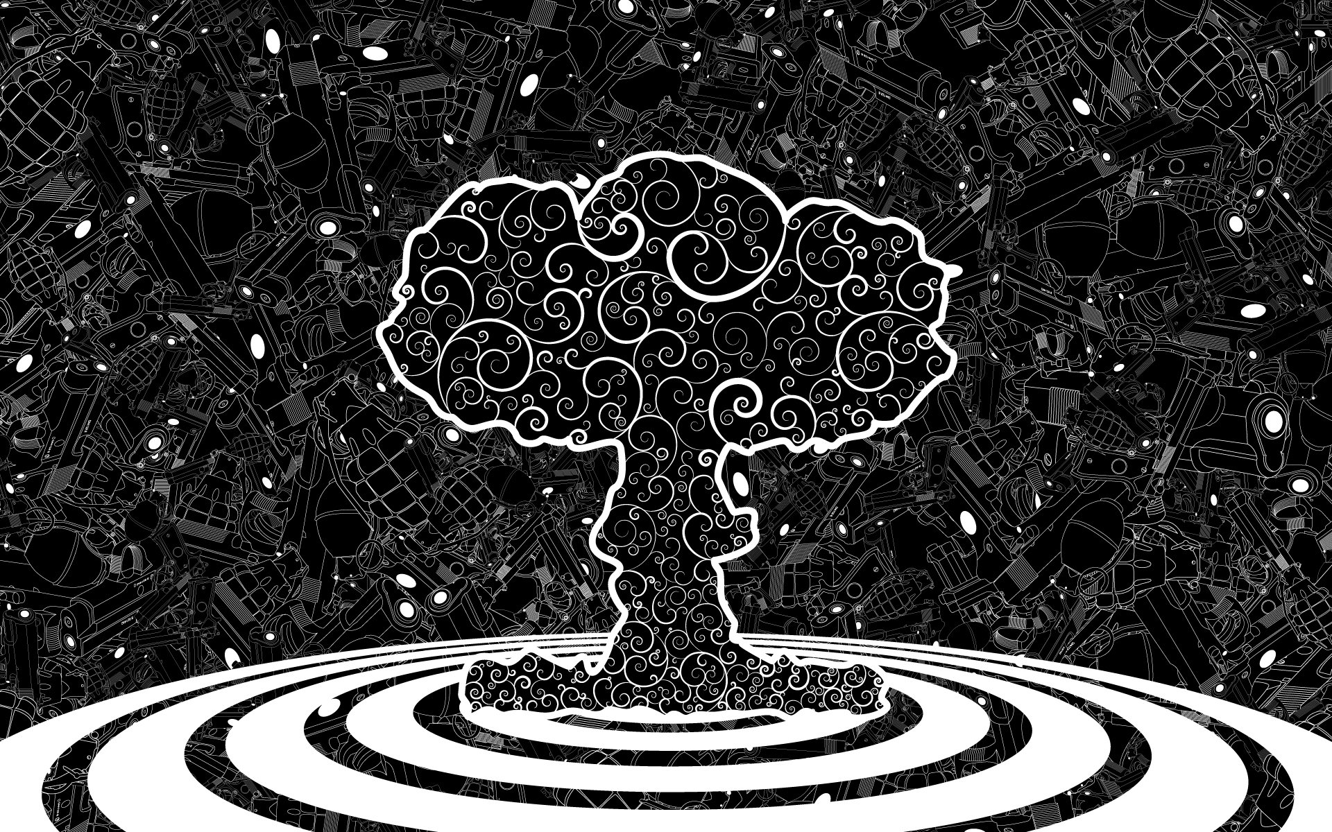 Atomowy okręt podwodny w oświetlonym nocnym doku