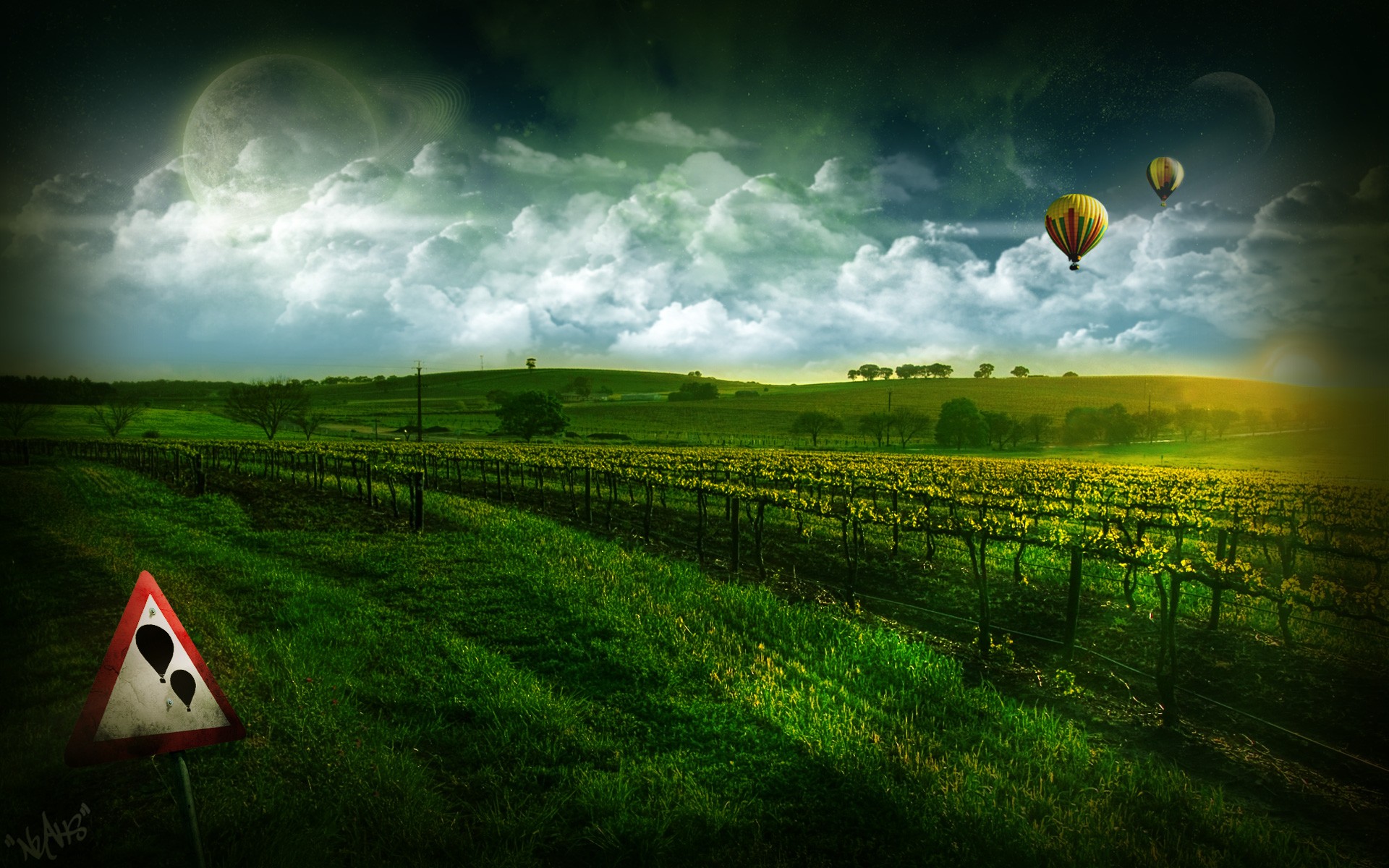 Balony wzniosły się nad zielonymi łąkami
