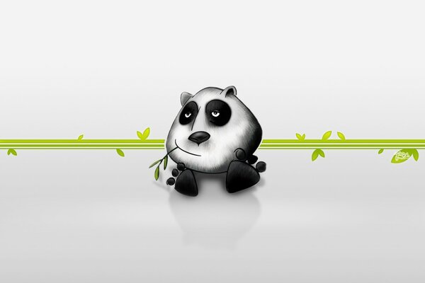 Żywa Panda je bambus na zielonej trawie. Enimel