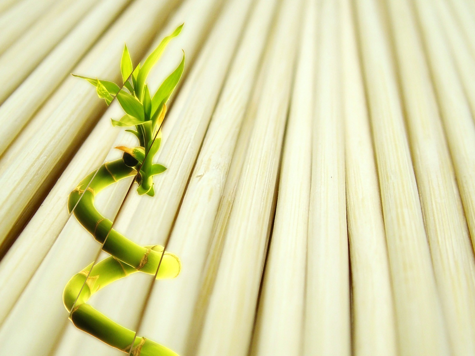 Dziewczyna w kimonie z fajką przy wodospadzie z bambusami