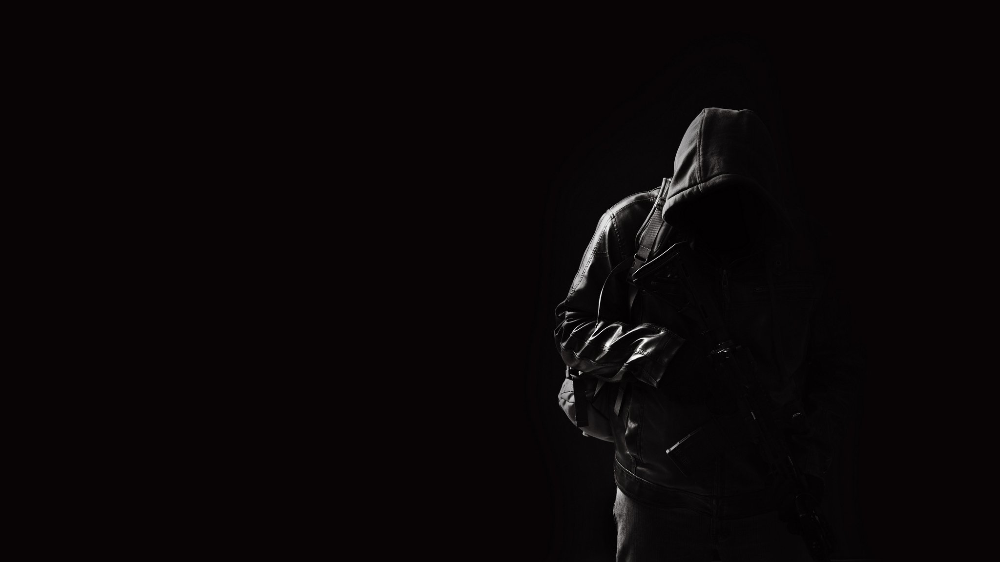 Myśl o niepokoju, smutku, mężczyzna w kapturze