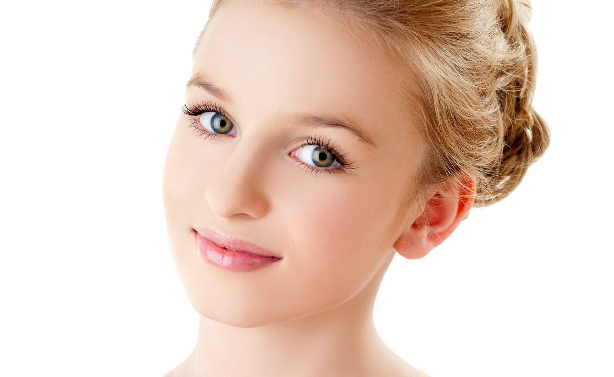 Twarz dziewczyny Blondynki z niebieskimi cieniami