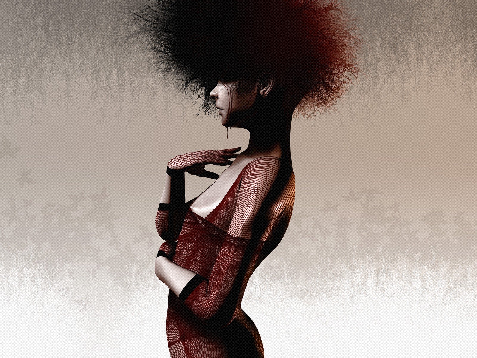 Kobieta z boku z bujnymi włosami w rękawiczkach w brązowych kolorachKobieta z boku z bujnymi włosami w rękawiczkach w brązowych kolorach