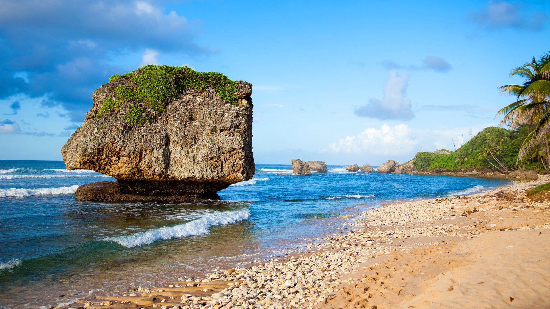 Skała nad morzem wśród zielonych palm