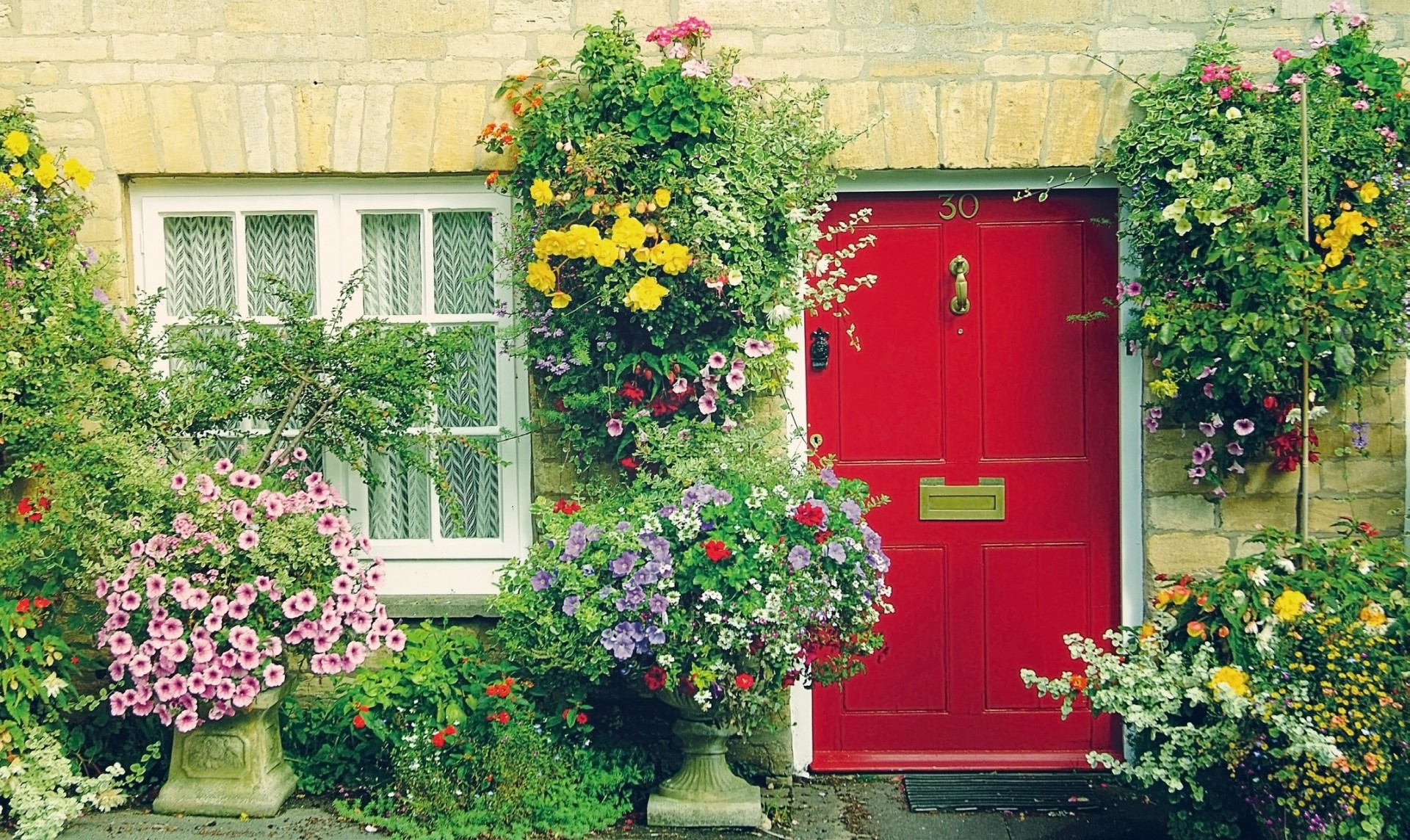 Budynek z oknem i drzwiami w kolorach