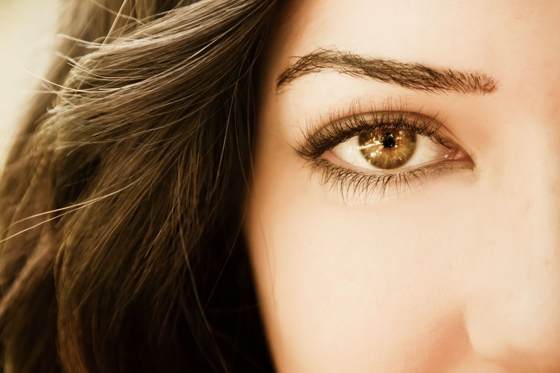 Brązowe oczy dziewczyny z dużymi rzęsami