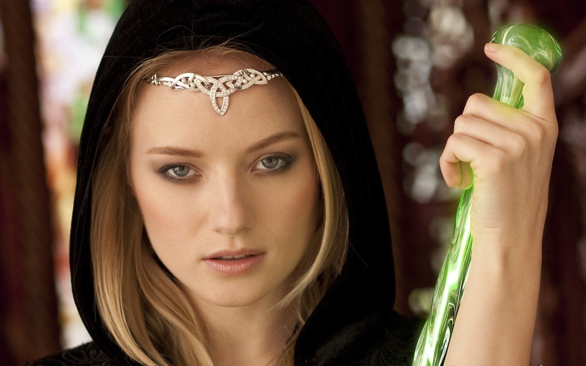Dziewczyna w Bieli pośrodku oświetlonej sali