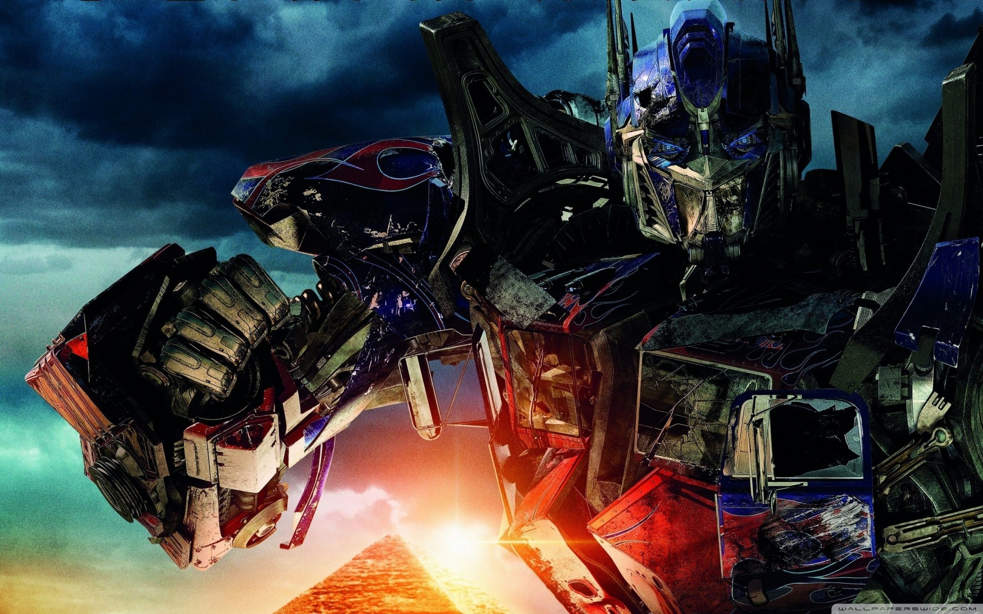 Bitwa robotów. Transformatory na tle pustkowia i dronów