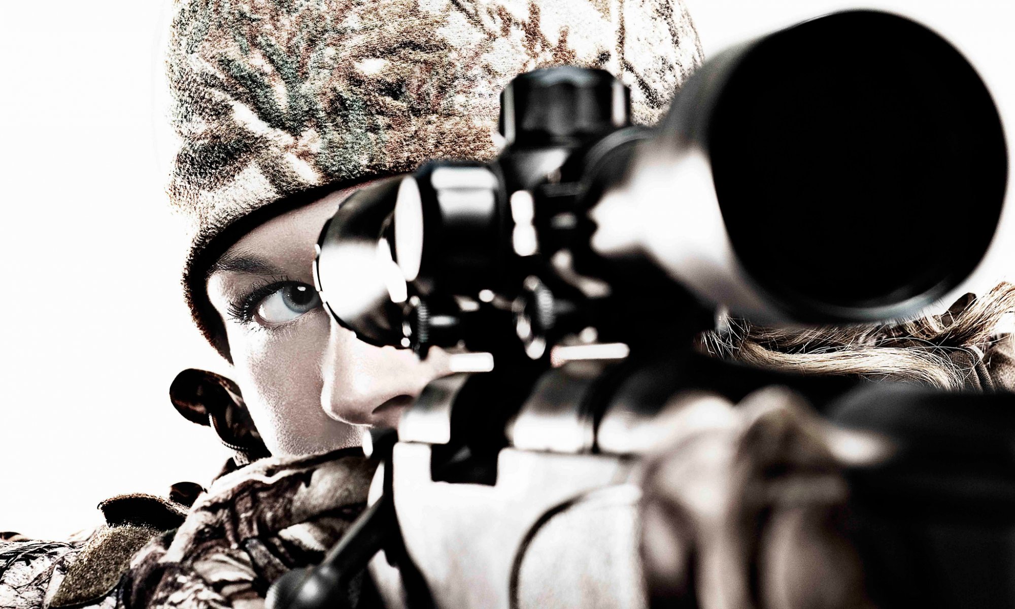 Snajper wpatrujący się w celownik karabinu maszynowego