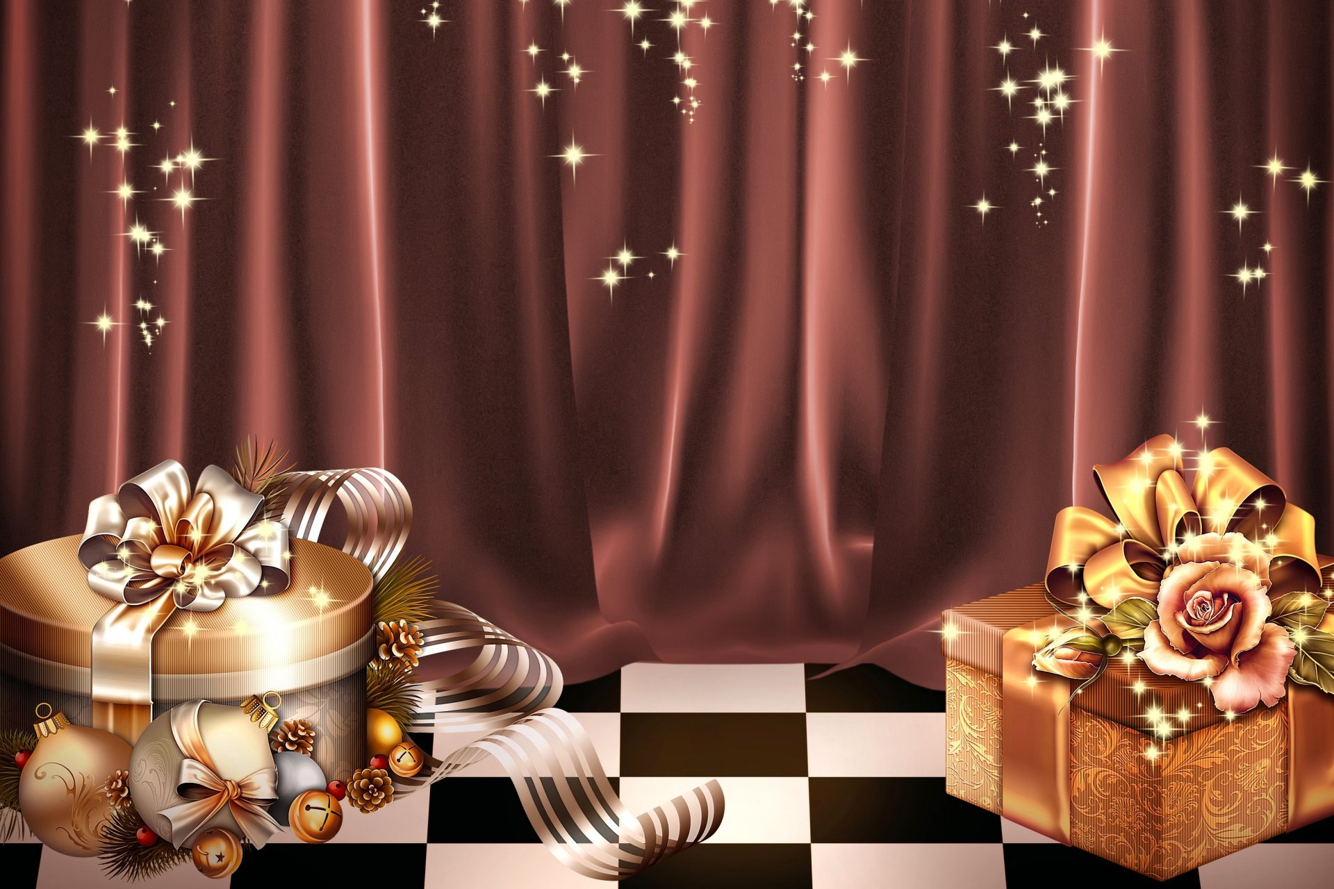 Złoty Płatek śniegu obok choinki i małe gwiazdki z czerwoną kulą