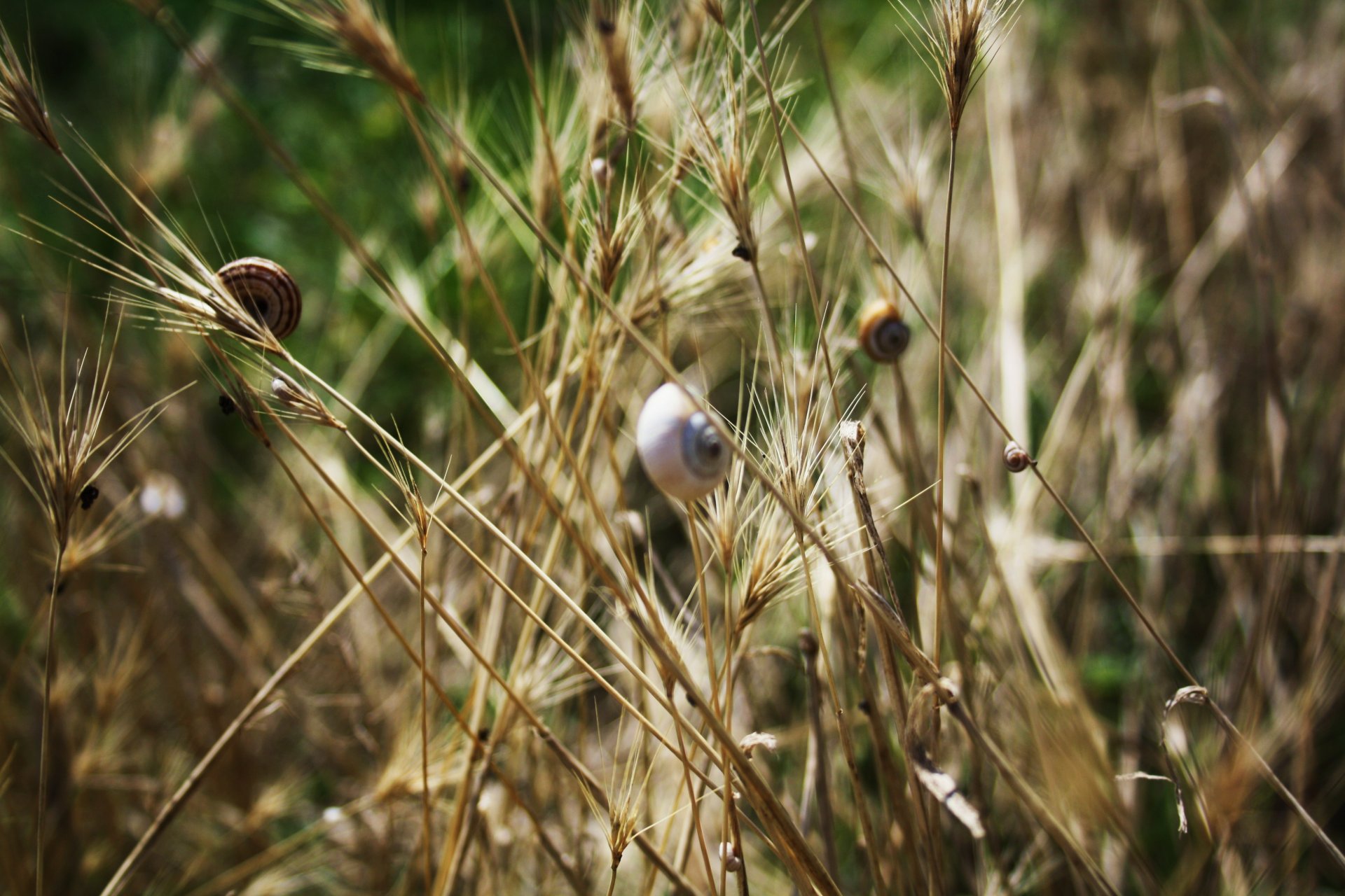 Ślimaki na gałęziach kłosków pszenicy