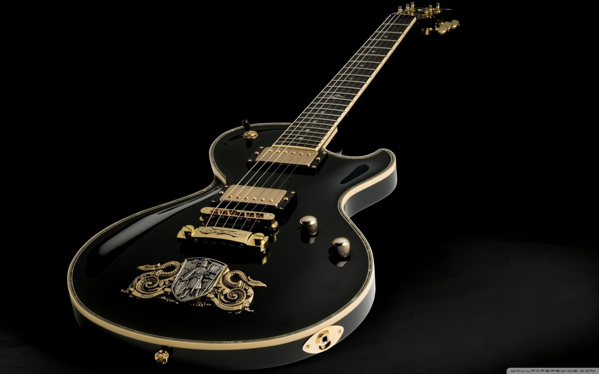 Na czarnym tle leży Czarna gitara