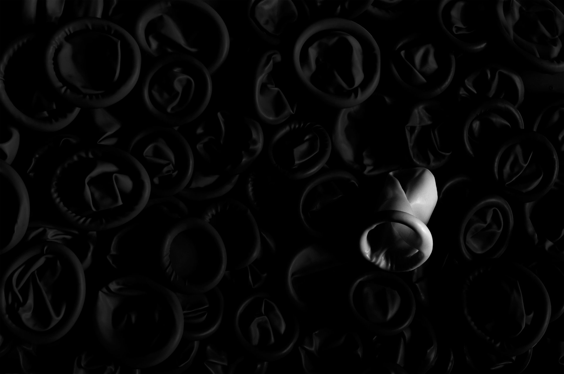 Duża czarna sofa w pokoju z czerwonymi akcentami