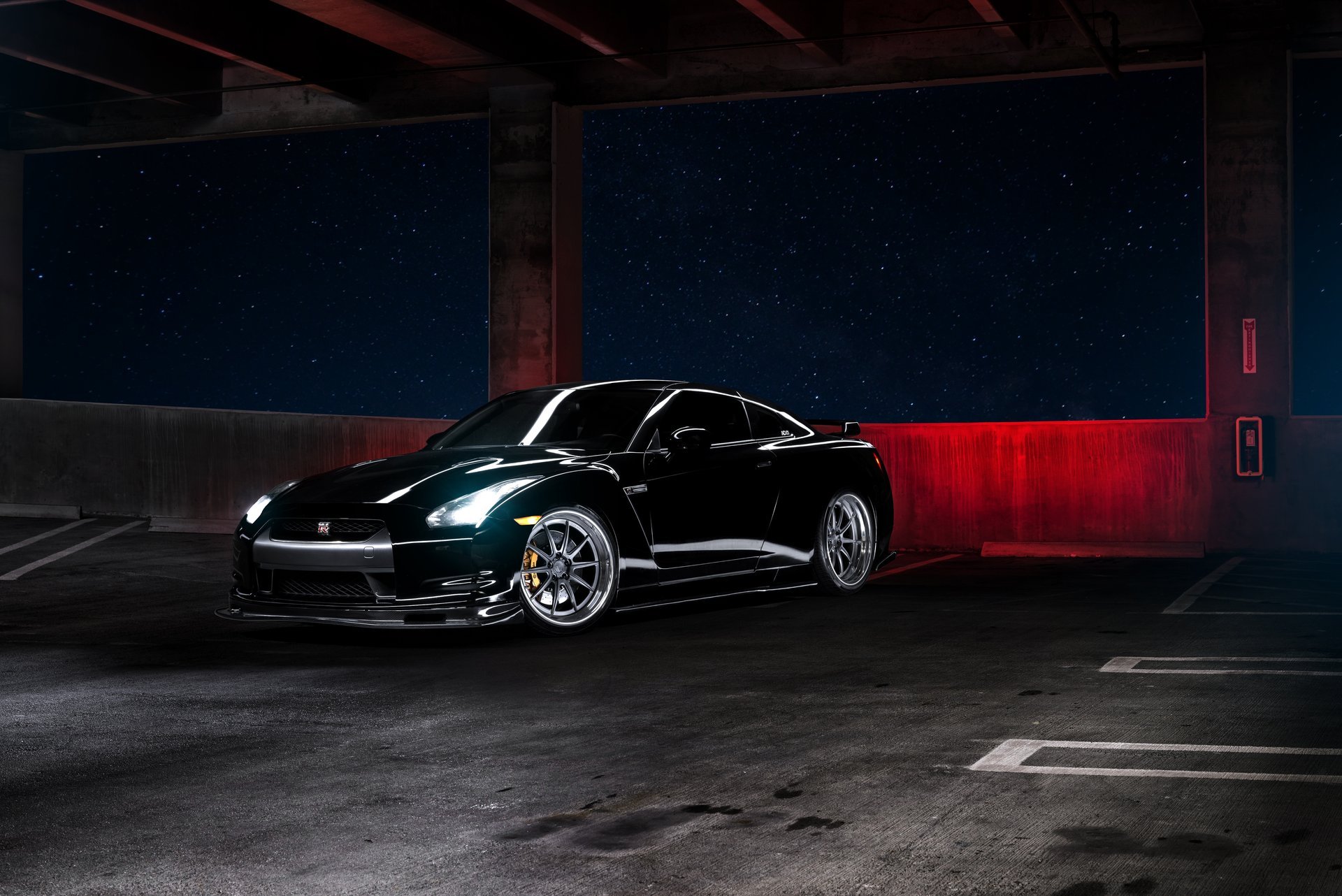 Czarny samochód sportowy z pomarańczowymi elementami dekoracyjnymi