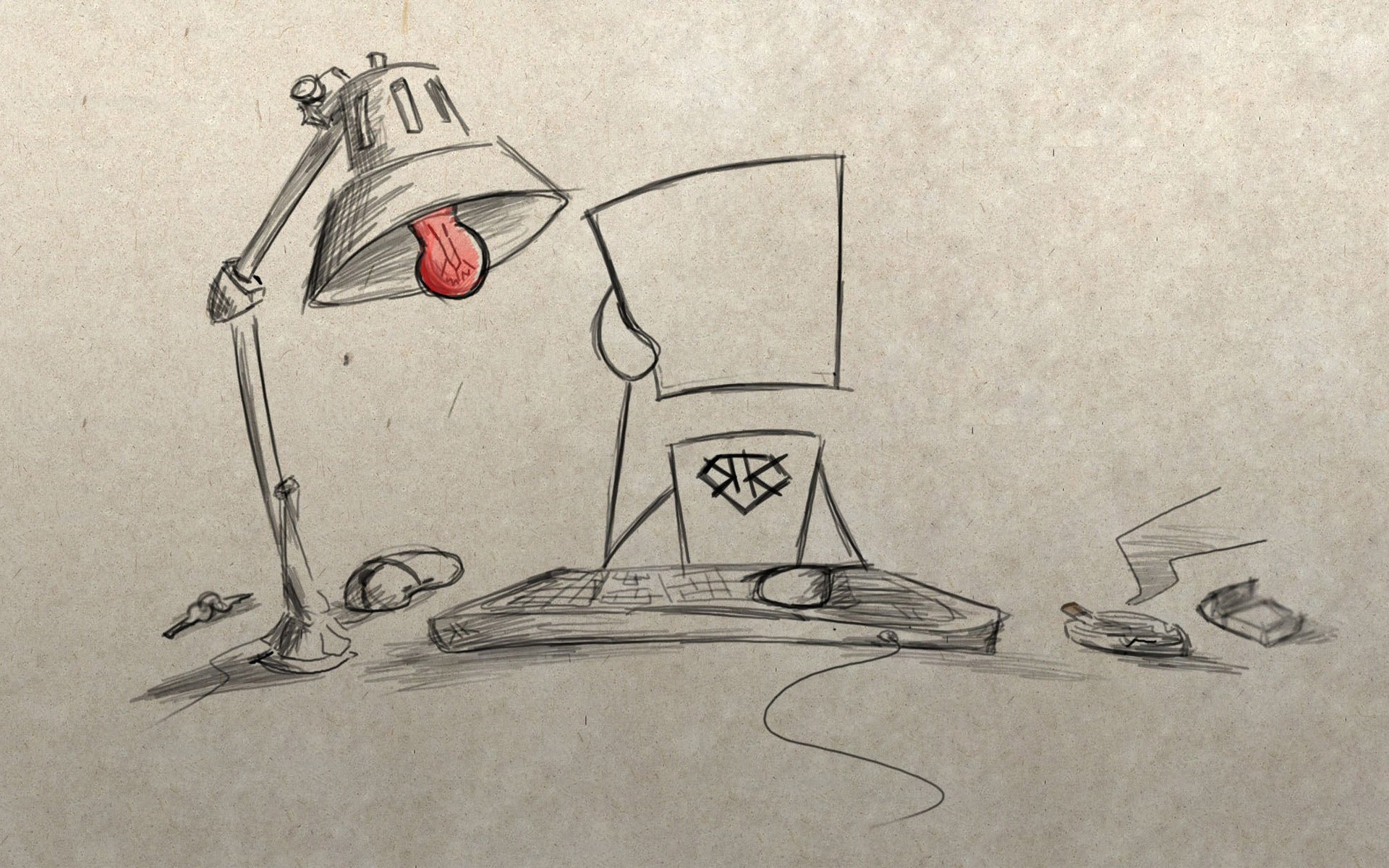 Czerwona lampa na tle komputera