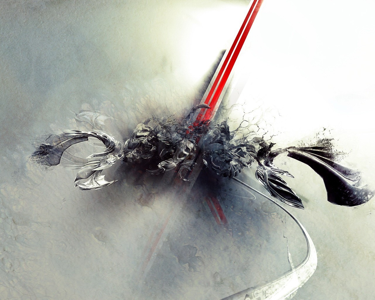Metalowa płytka ze śrubami, czerwona linia na ciemnoszarym tle