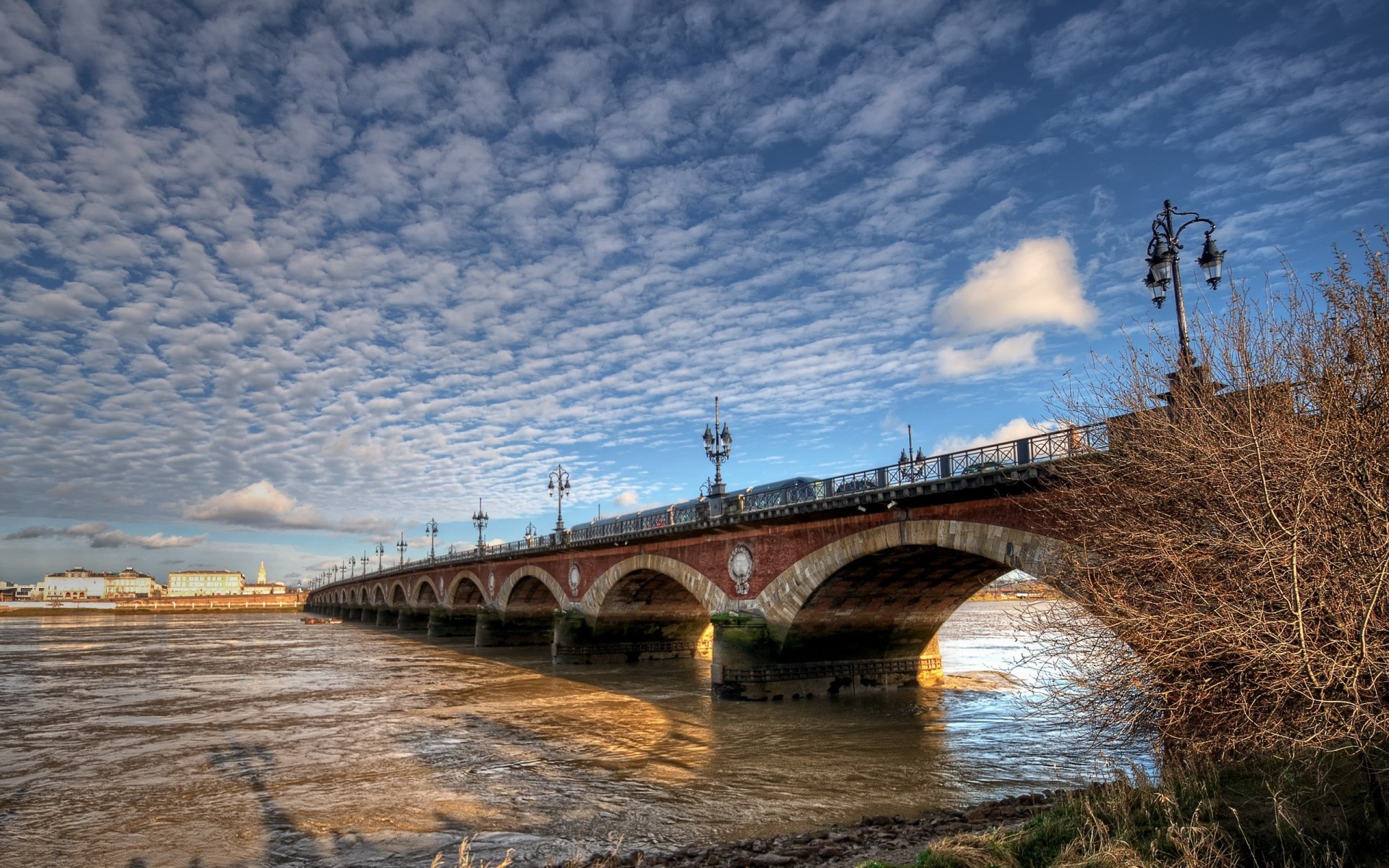 Kamienny most na rzece. krajobraz