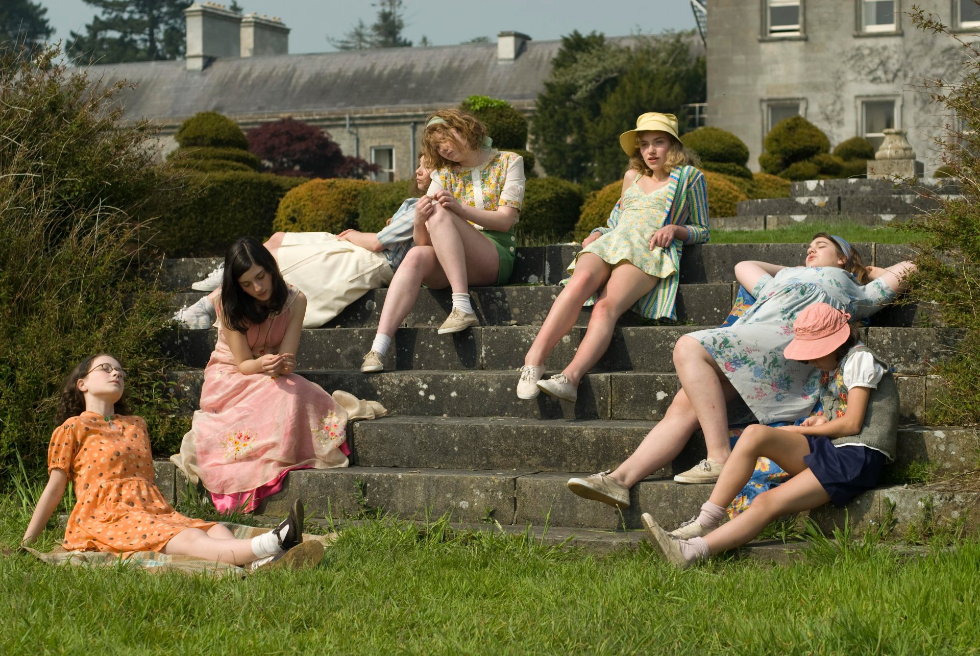 Dziewczyny-dziewczyny siedzą na kamiennych schodach