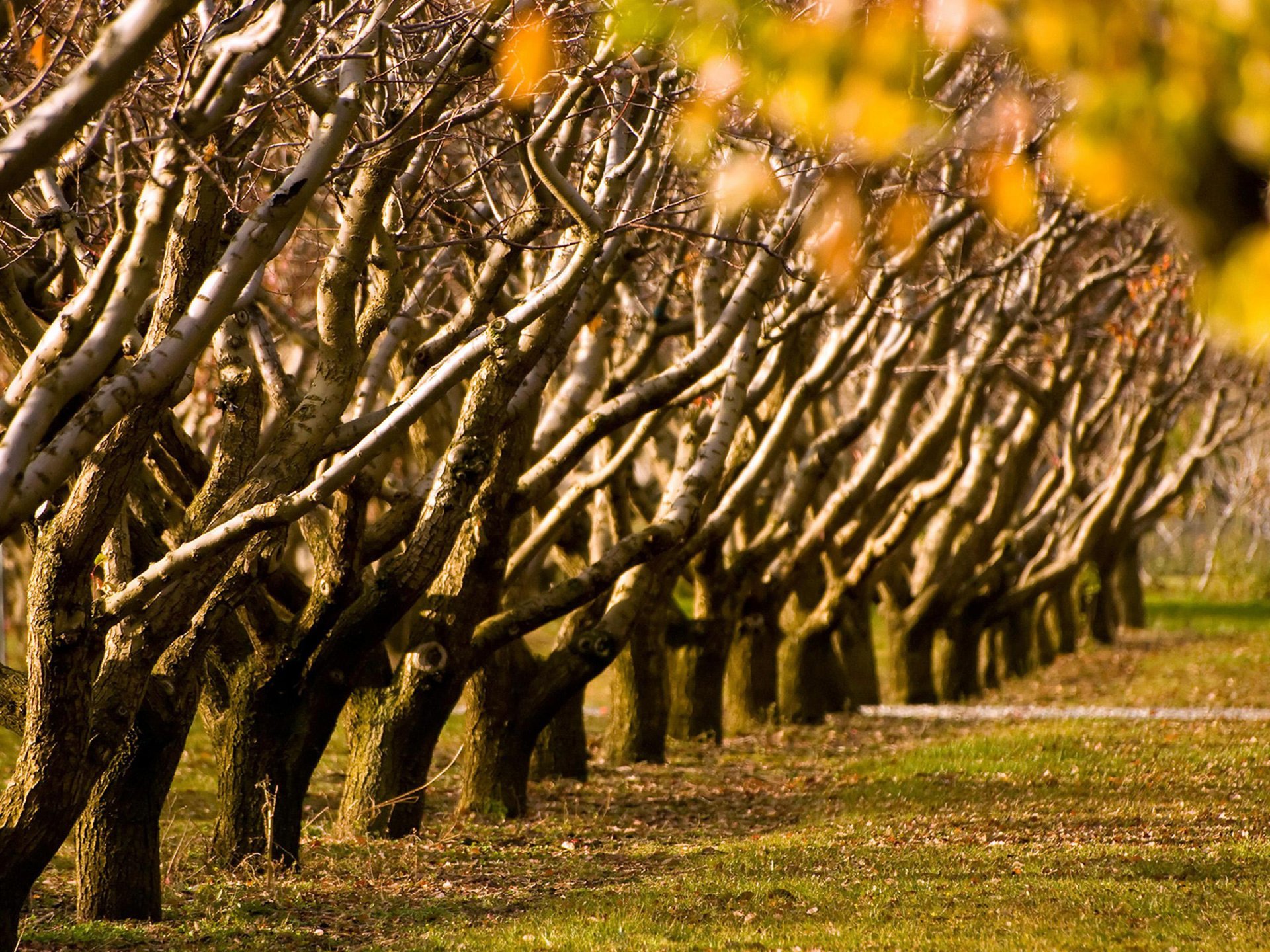 Brązowy samochód subaru w parku na tle drzew bez liści