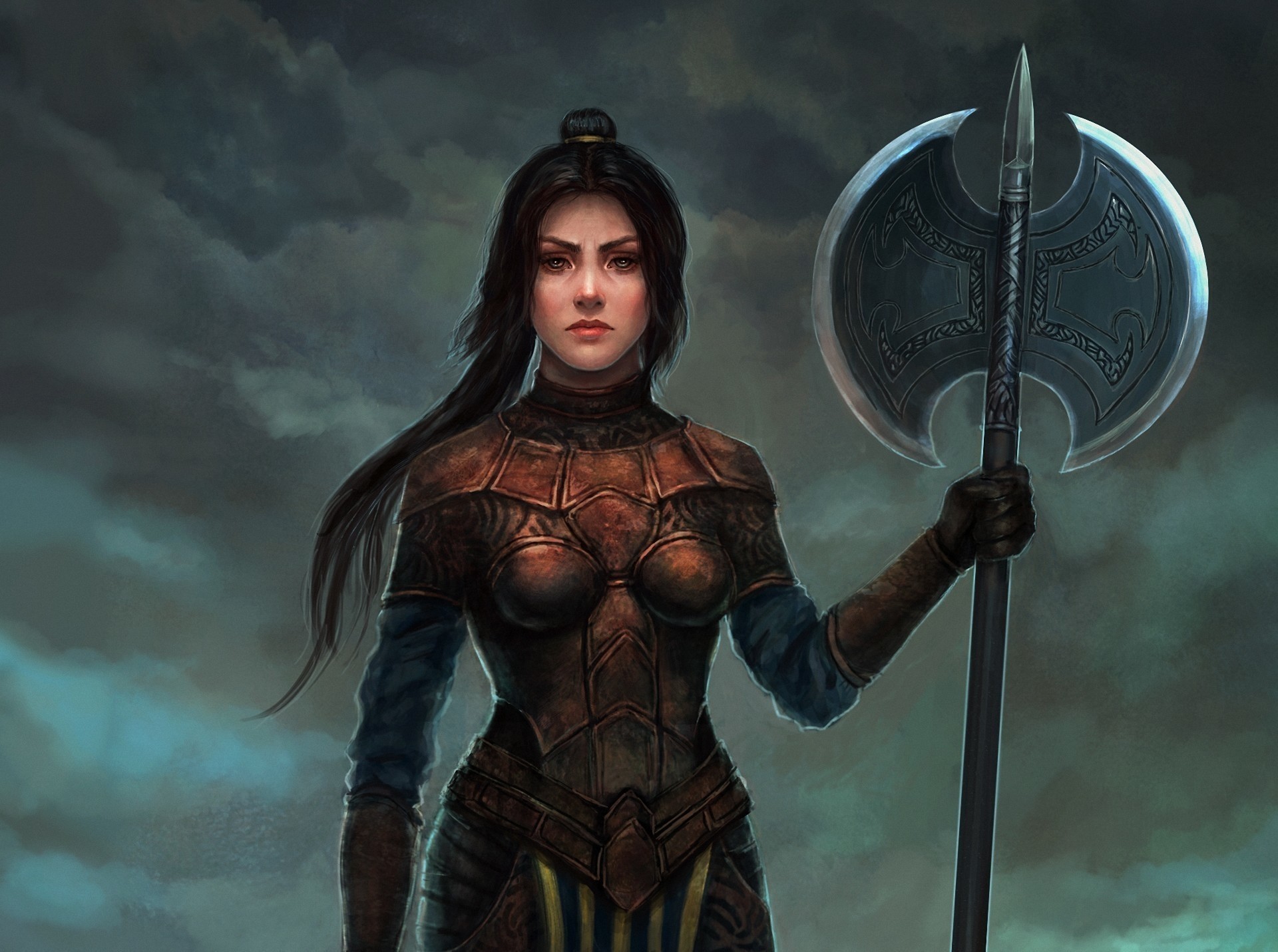 Kobieta wojownik nosi hełm i idzie na wojnę
