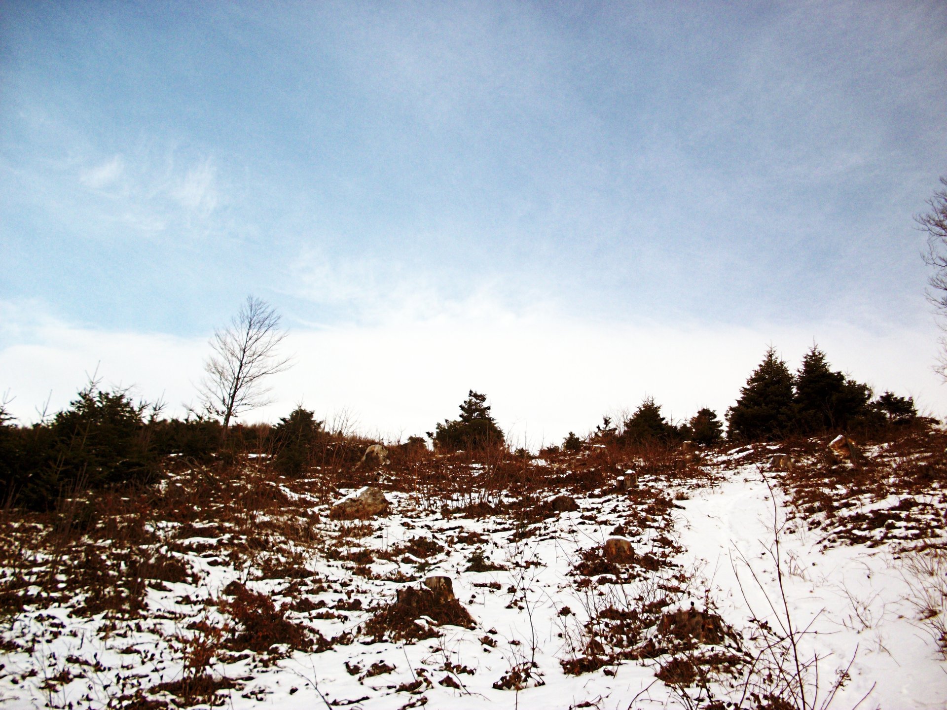 Czerwona latarnia-świecznik w śniegu wśród choinek