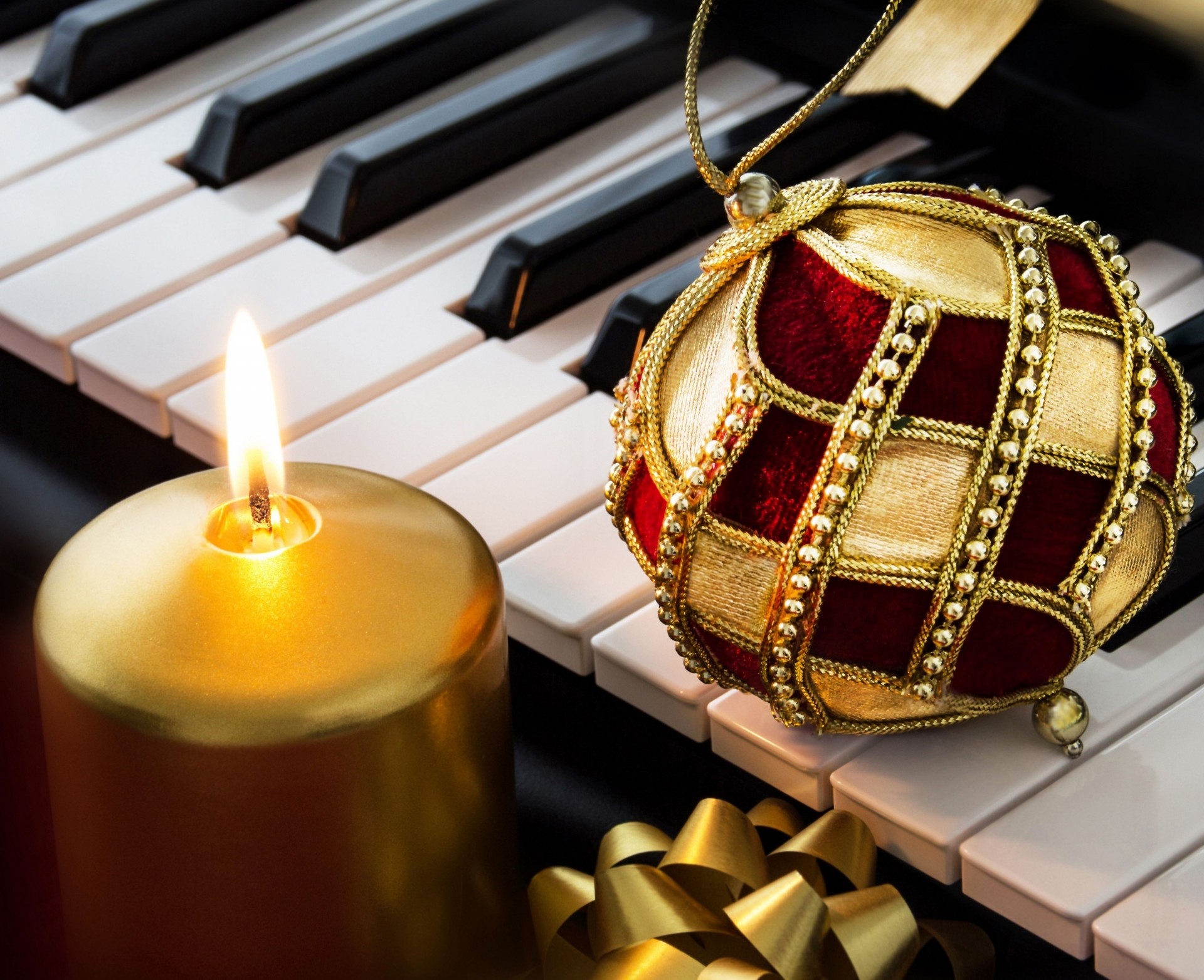 Noworoczna Martwa natura ze świecą i klawiszami