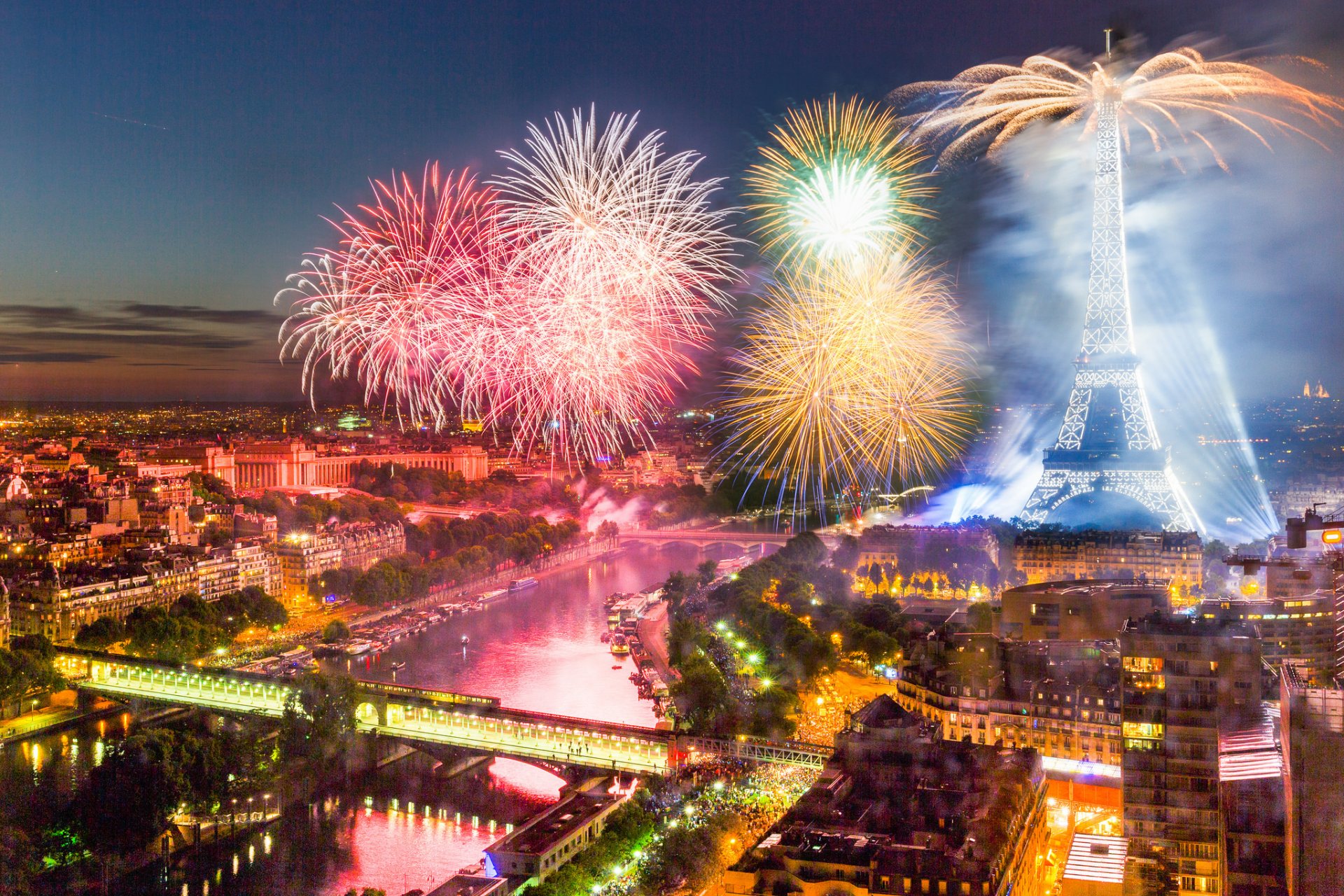 Salut w Dzień Bastylii przy Wieży Eiffla