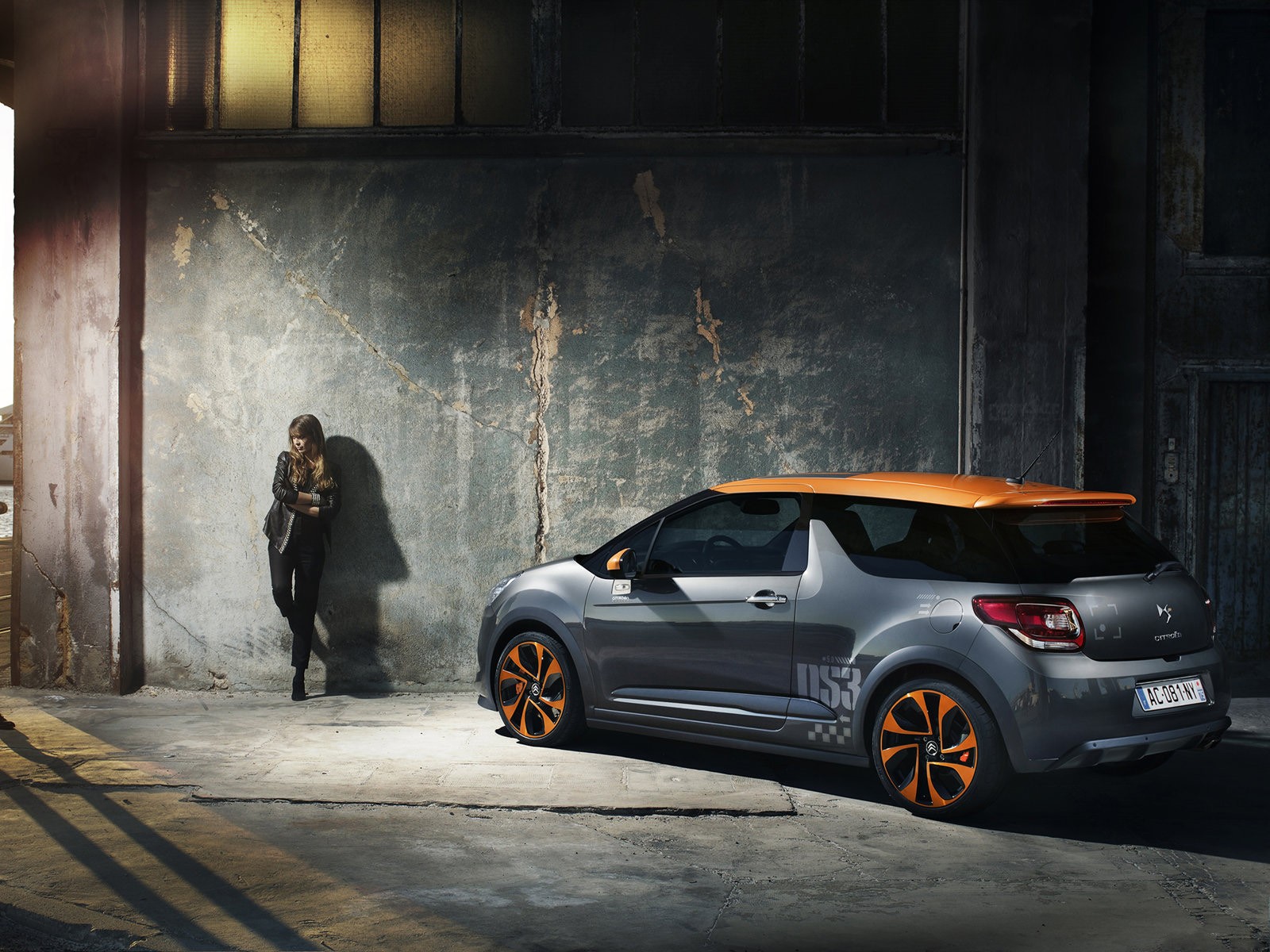 Dziewczyna i samochód Citroena stoją pod ścianą