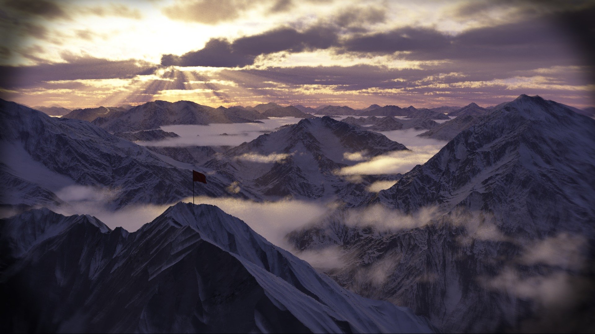 Obraz przedstawiający niebo mgła góry