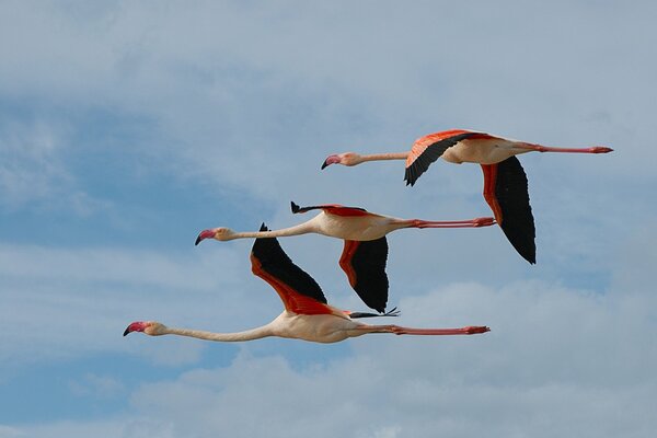 Trzy flamingi lecą pięknie